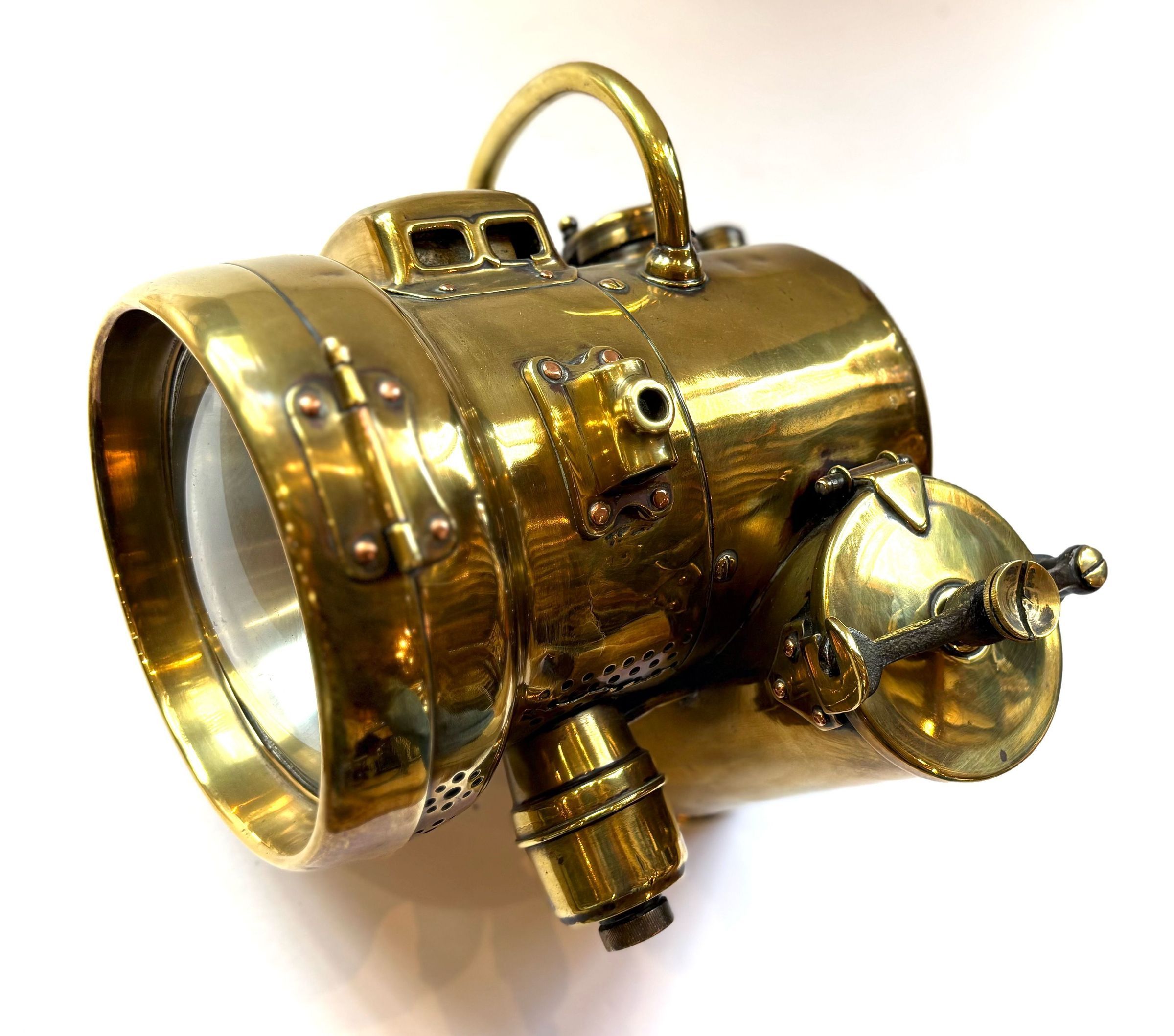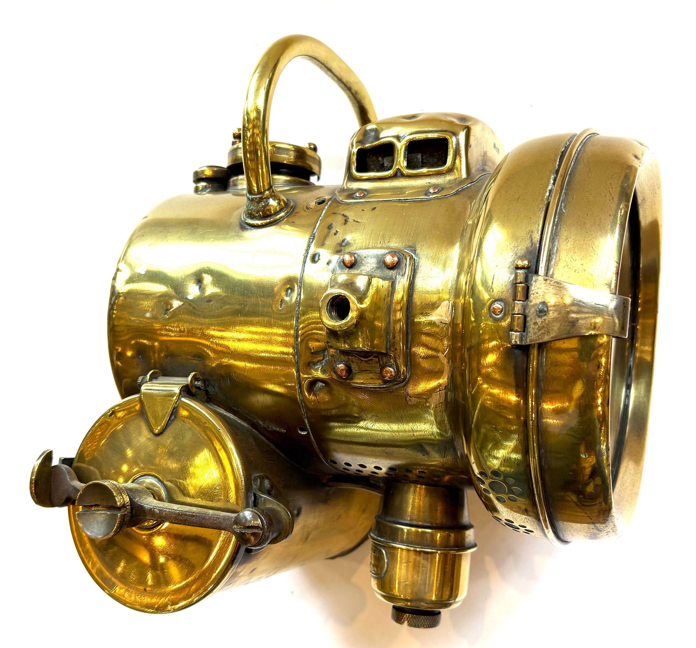 Acetylene gas lamps were used to illuminate buildings, as lighthouse beacons, and as headlights on motor-cars and bicycles. Portable acetylene gas lamps, worn on the hat or carried by hand, were widely used in mining in the early twentieth century. They are still employed by cavers, hunters, and cataphiles. Source WikipediaCataloged By