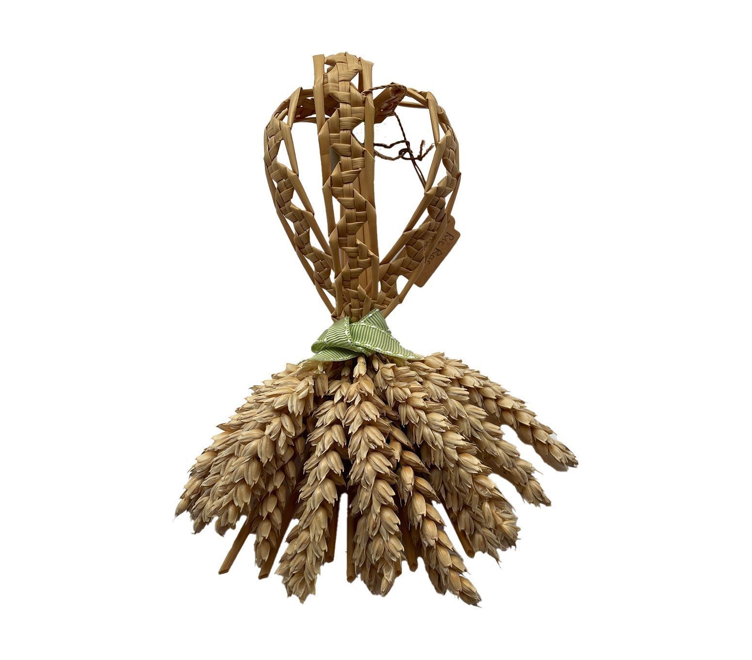 Abstract corn dolly of wheat straw and ears, with distinct zig-zag plaiting down the front centre of the piece.Cataloged By