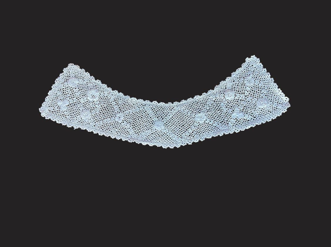 White cotton collar of crochet lace.Context