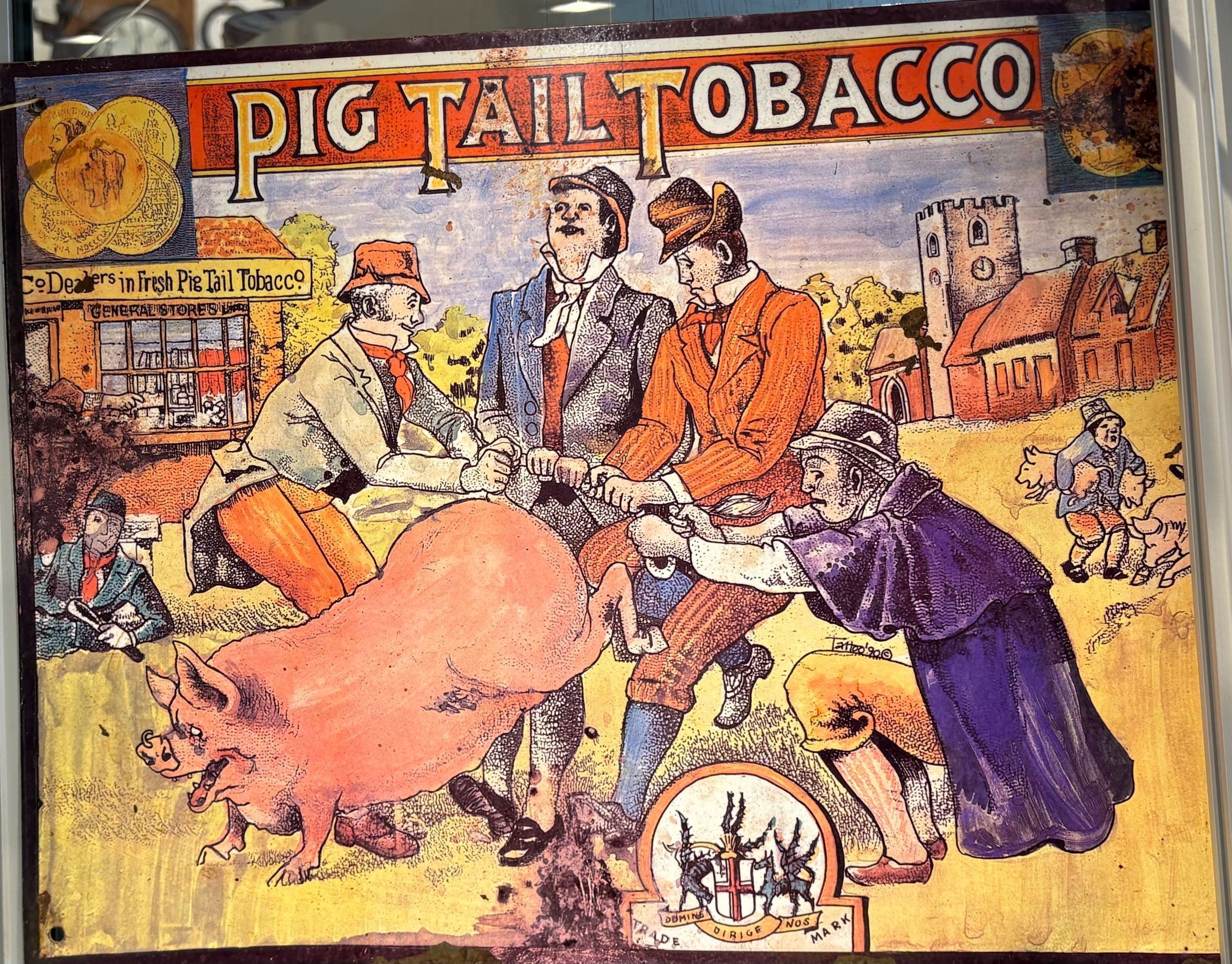 Enamel sign advertising Pig Tail TobaccoContext