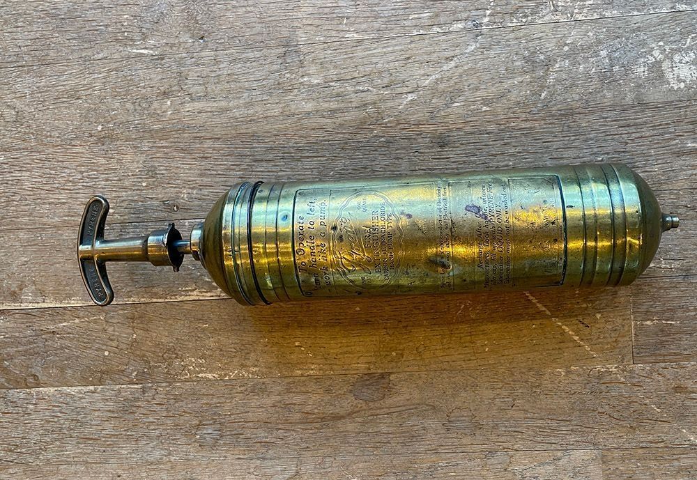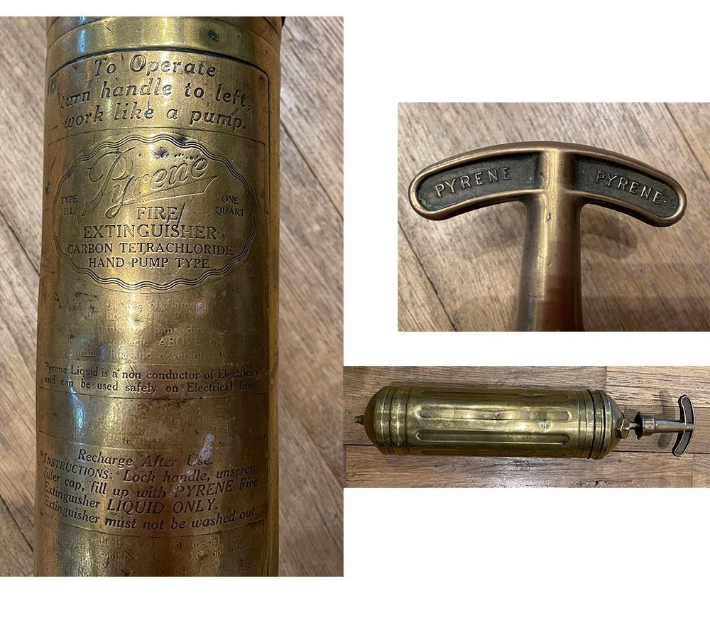 Pyrene chemical fire extinguisher. A hand held extinguisher with a pump action.Context