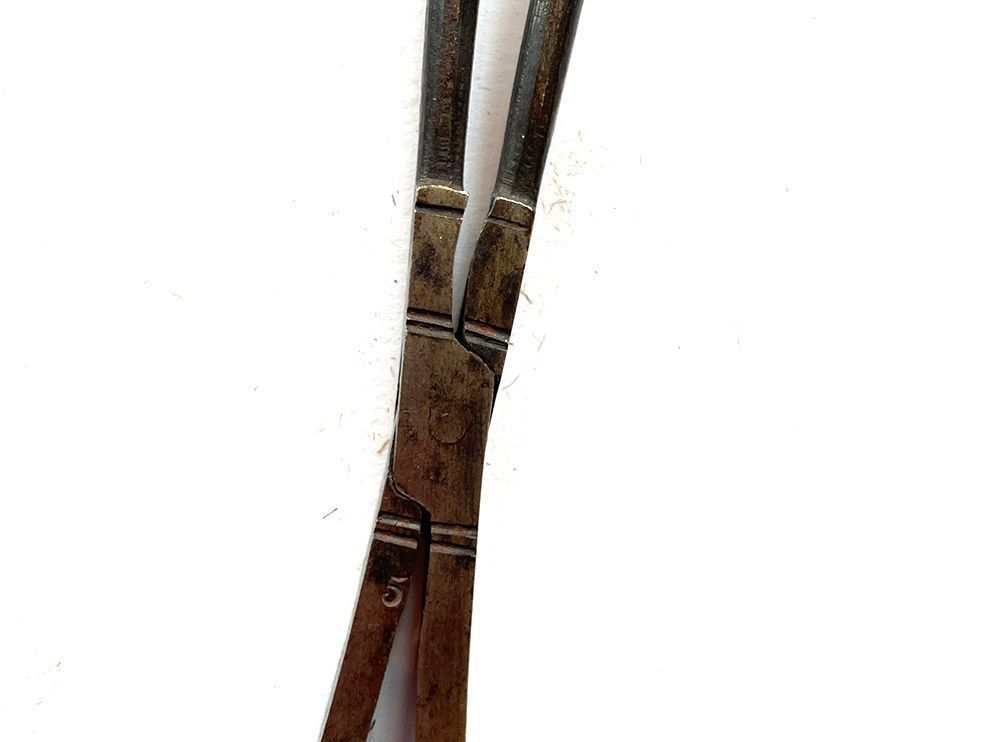 The lefthand side image is inscribed with the no '5'. It is a slightly longer and weightier pair of tongs than the righthand side image.Cataloged By