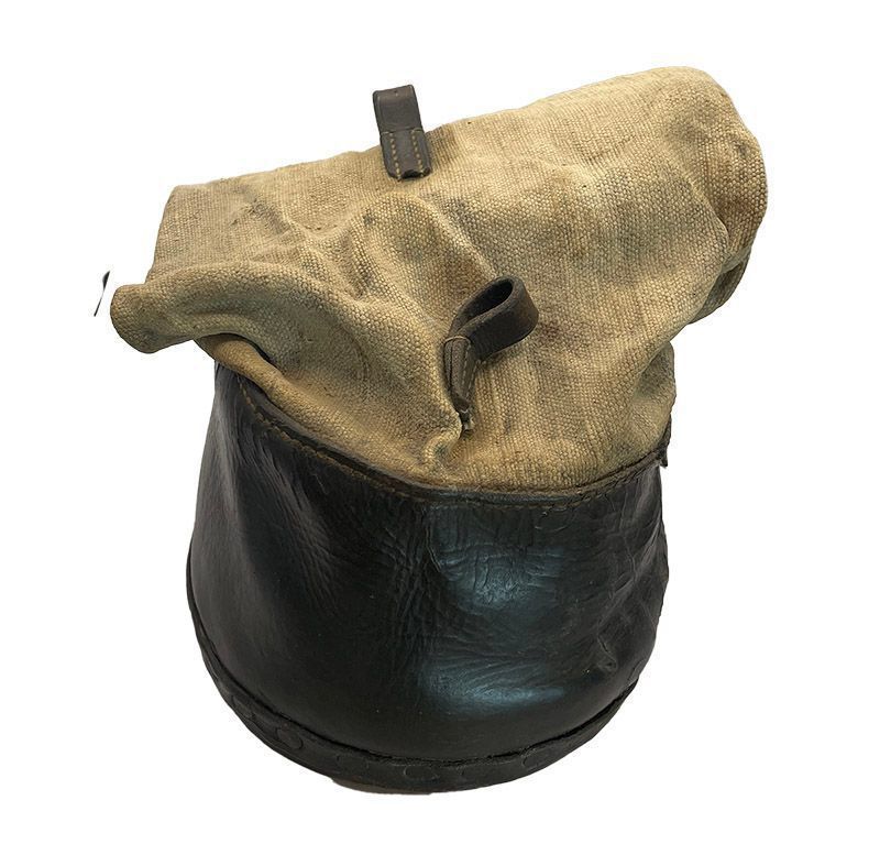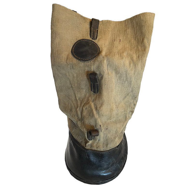 A leather and canvass boot for a horse.Cataloged By