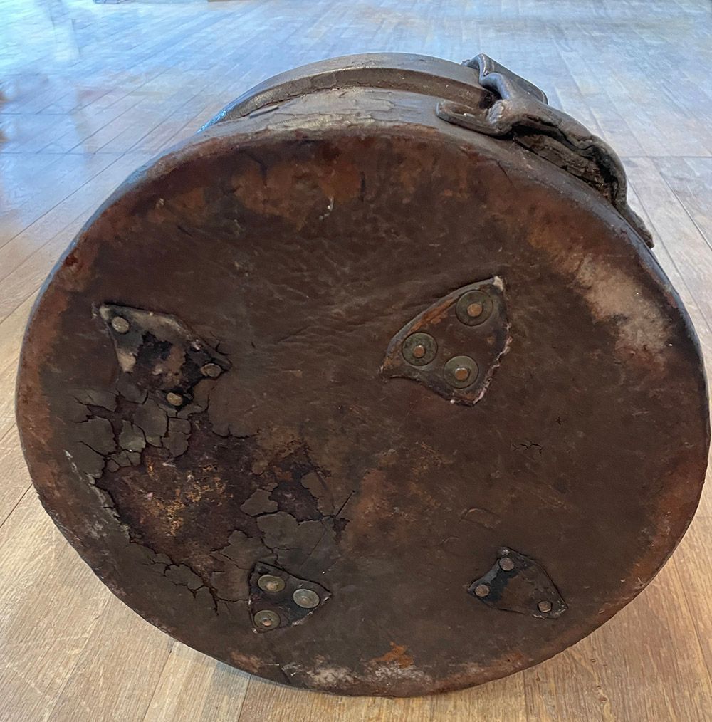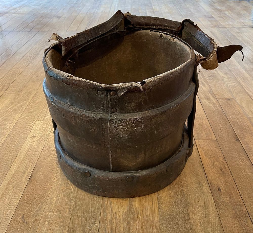 Leather and canvas bucket. The canvas lines the inside and the underside of the handle. The bottom of the bucket appears to be strengthened.Cataloged By