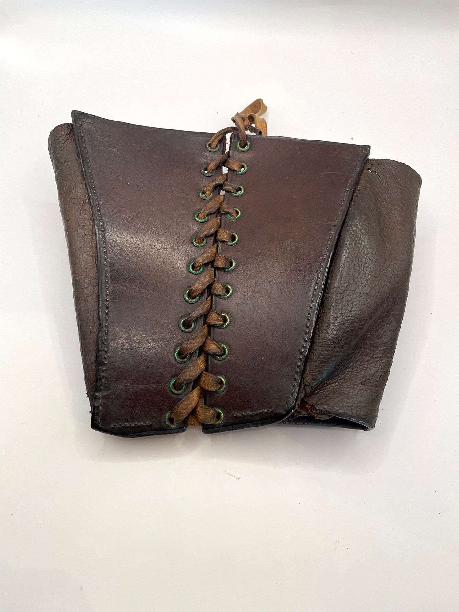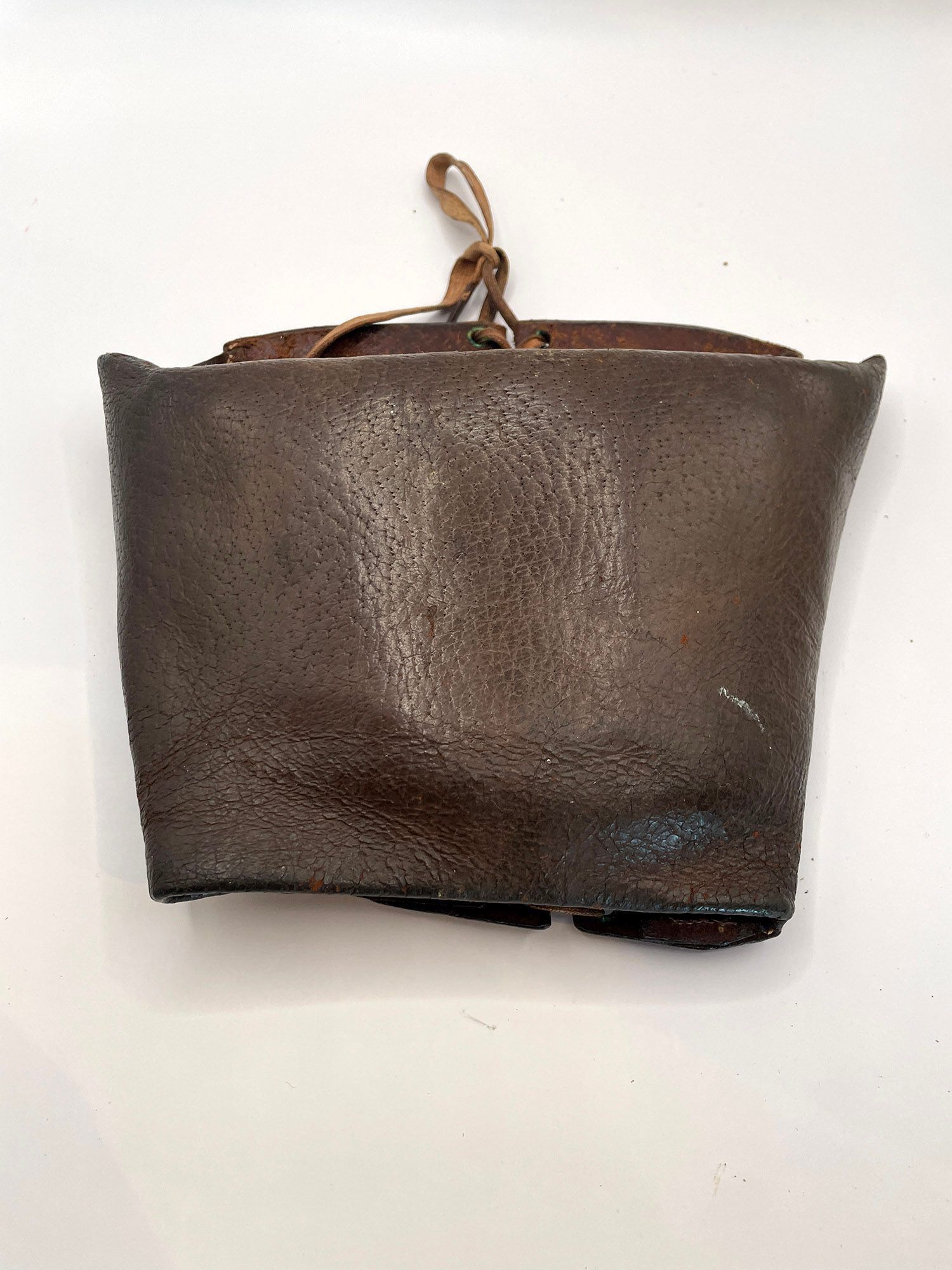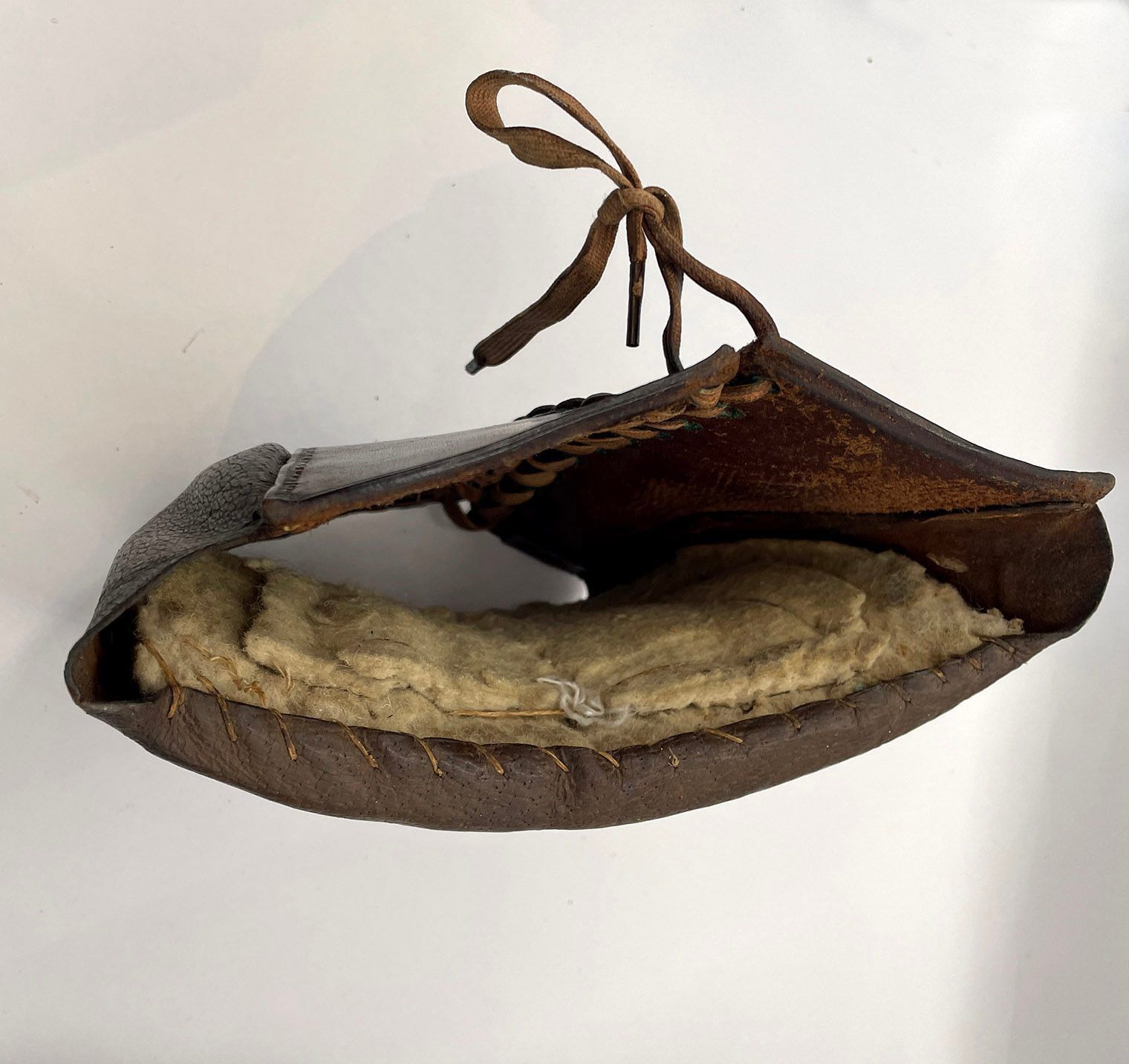 A padded leather pouch which protects the leg of the horse when working. Sometimes known as a "Queen'.Cataloged By