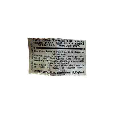 The top of the lamp has the Lucas logo - the wheel, the lion and the flame emblemCategory