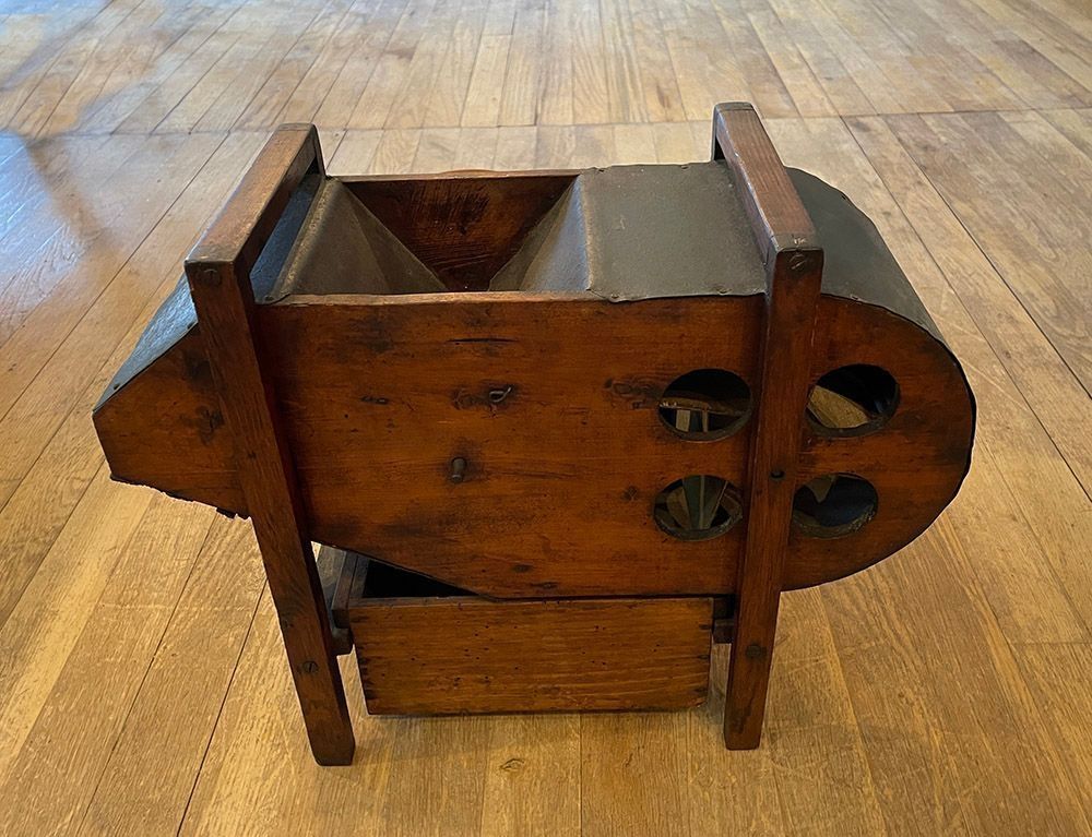 Made by J Cooch of Harlestone, Northants, 1847. The firm of Cooch & Sons was established in 1800 by Joshua Cooch, who patented a seed dressing machine. The firm remained in the family for 174 years and only finally closed in 1974. They had the ability to develop and design machinery for the new agricultural market which was seeking more efficient ways to produce more produce.Cataloged By