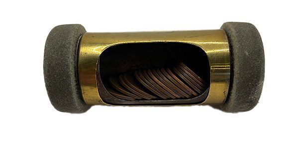Metal tube into which money can be inserted. Also known as "cash carrier".Context