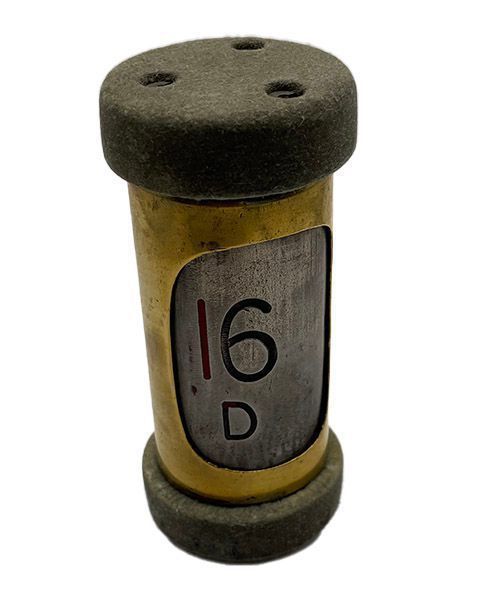 In the shop after you have paid for your goods, the sales assistant would place the money in the cylindrical metal carrier, which could be closed by twisting the ends. Later the carrier was inserted into a metal box known as a cash station.