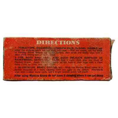 Sold from the 1880s in Great Britain, the company Benjamin Brooke and Co. was purchased by William Lever in 1899. The Monkey Brand 'soap-monkey' appeared in various disguises but settled as a sort of monkey/human servant. The brand was so popular that it found its way into contemporary literature of the time - Bernard Shaw, Beatrix Potter and James Joyce.