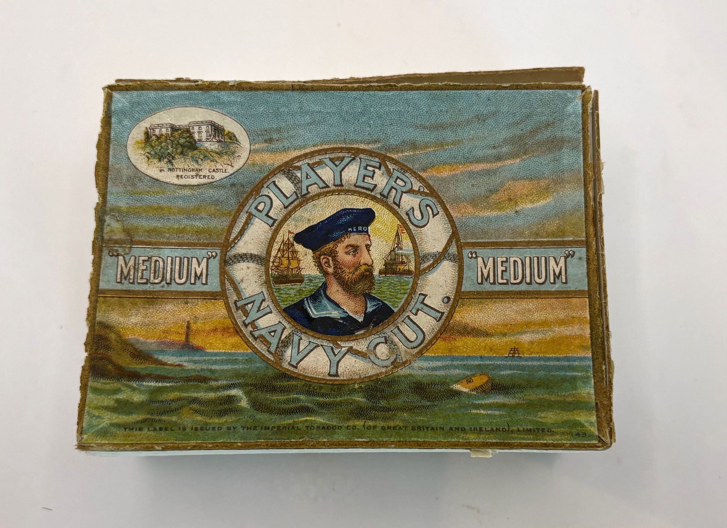 Navy Cut Tobacco was a brand of tobacco products, pipe and cigarette, originally manufactured by John Player & Sons) in Nottingham, England where it continued to be produced after Player's became a branch of the Imperial Tobacco Company of Great Britain and Ireland in 1901. Named "Player's Navy Cut," the brand gained popularity in Britain, Germany, and British Ceylon (present-day Sri Lanka) during the late 19th and early 20th centuries, later expanding to the United States.The brand's packaging featured a distinctive logo of a sailor in a 'Navy Cut' cap.