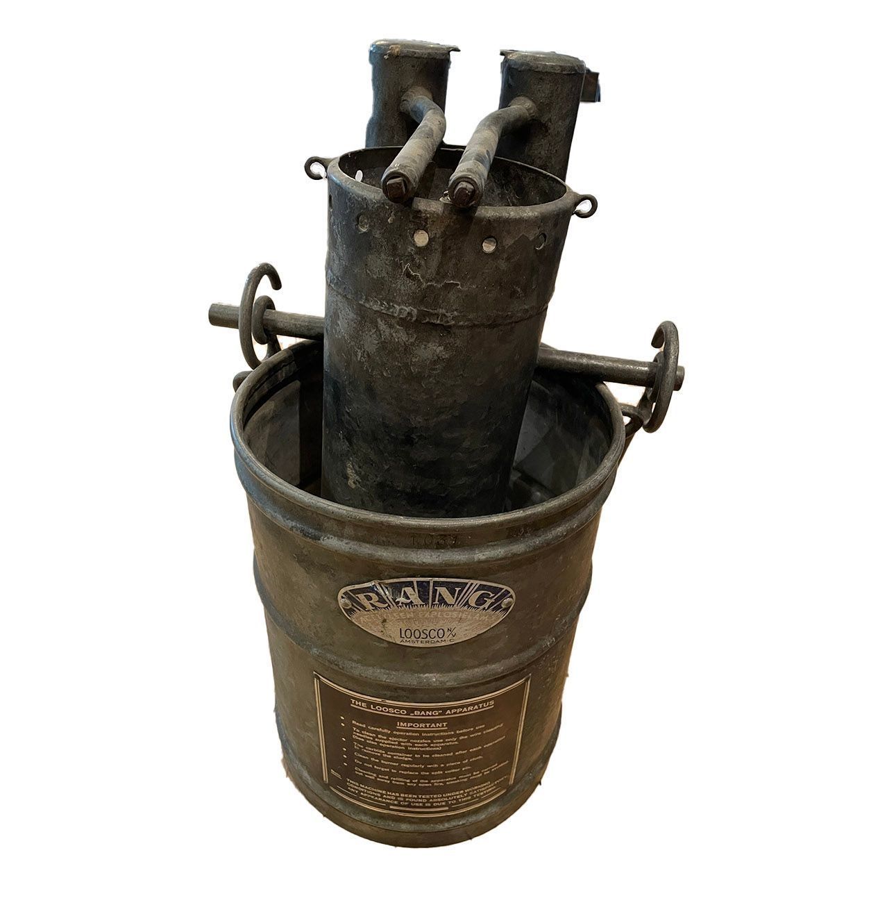 Metal carbide explosive device. Label states "Acetylesen Explosielam" LOOSCO n/v Amsterdam -CCataloged By
