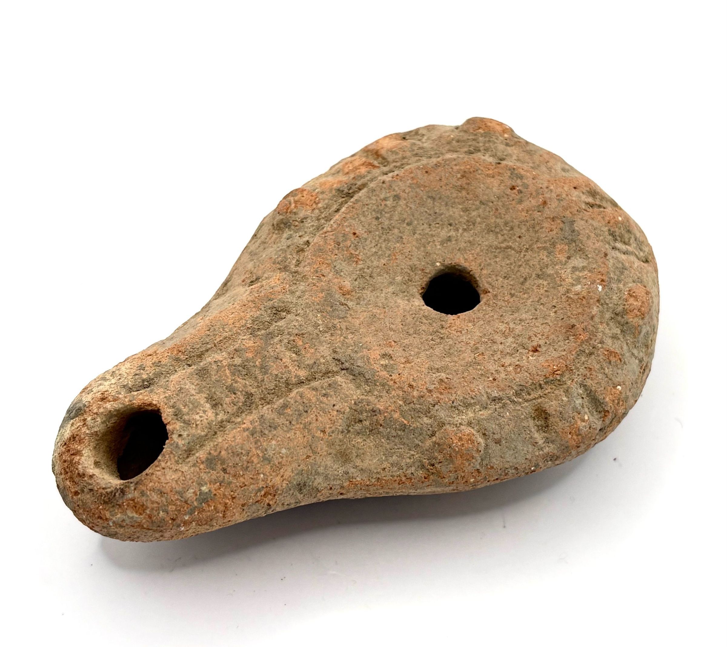 A Greek red terracotta Lamp, found in a Lydian tumulus at Sardis Circa 5th Century ADCataloged By