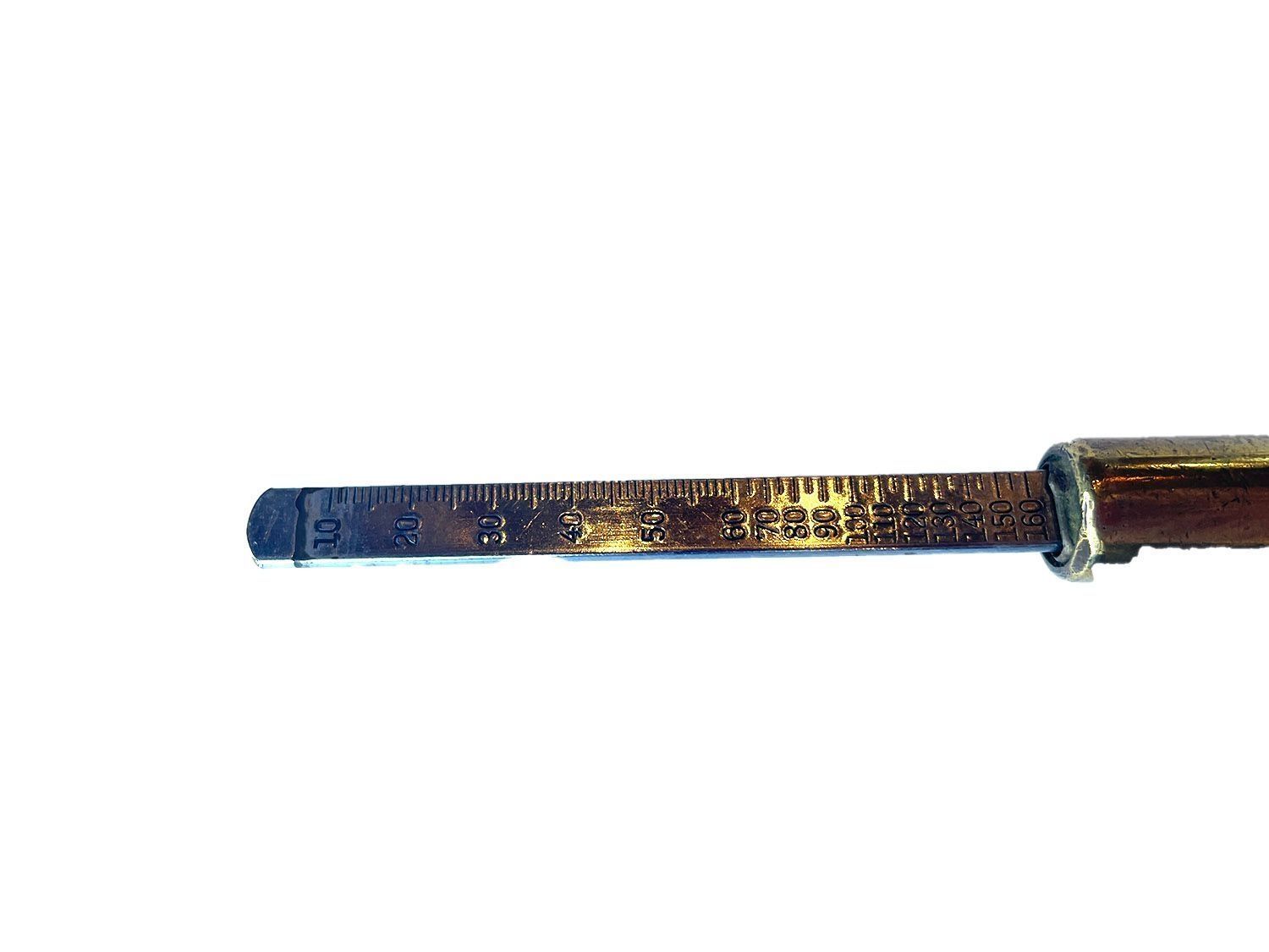 Brass tyre gauge, able to measure from 10lbs to 160lbs.Context