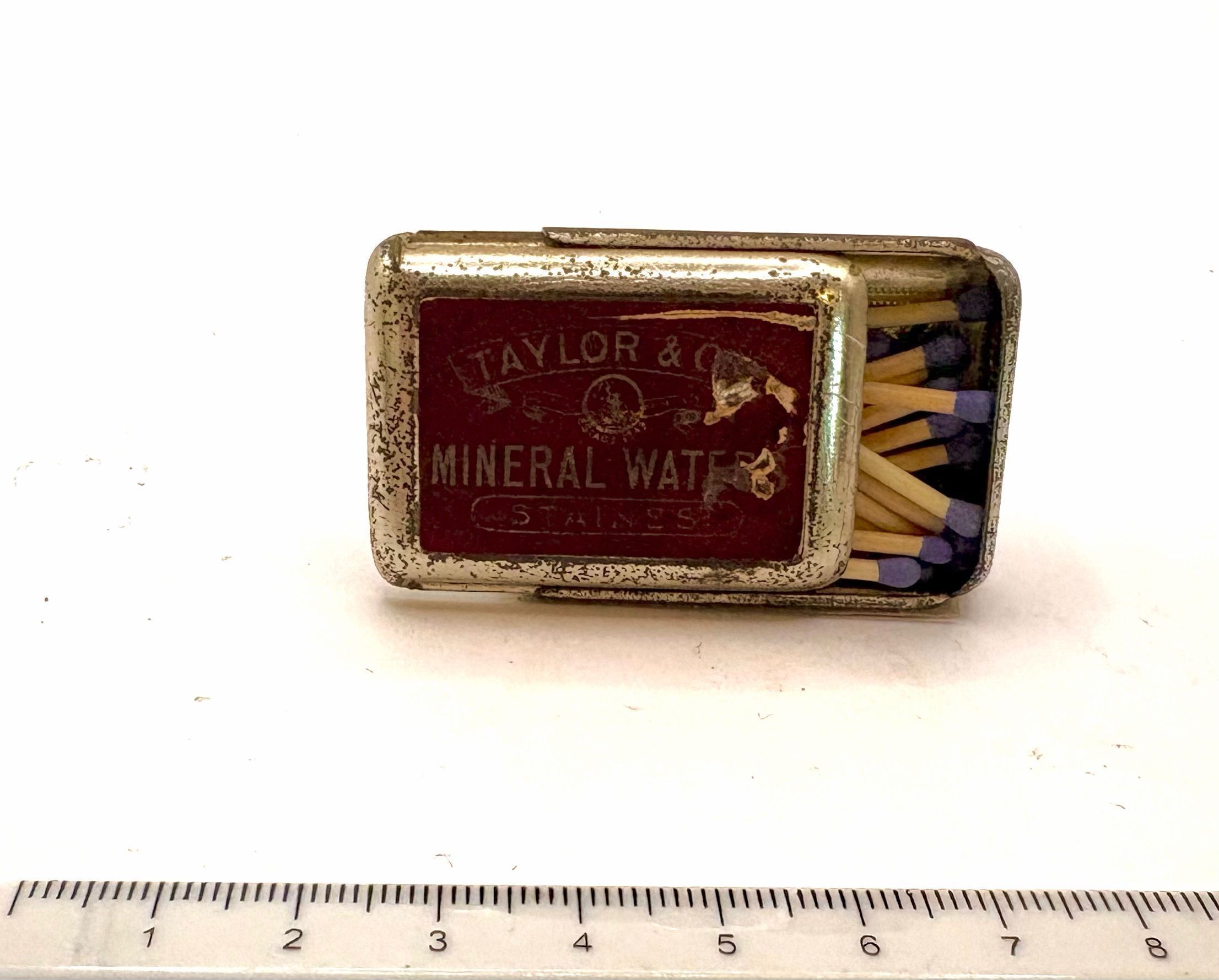 Tin Match box advertising Taylor & Co Minerak Waters - Staines