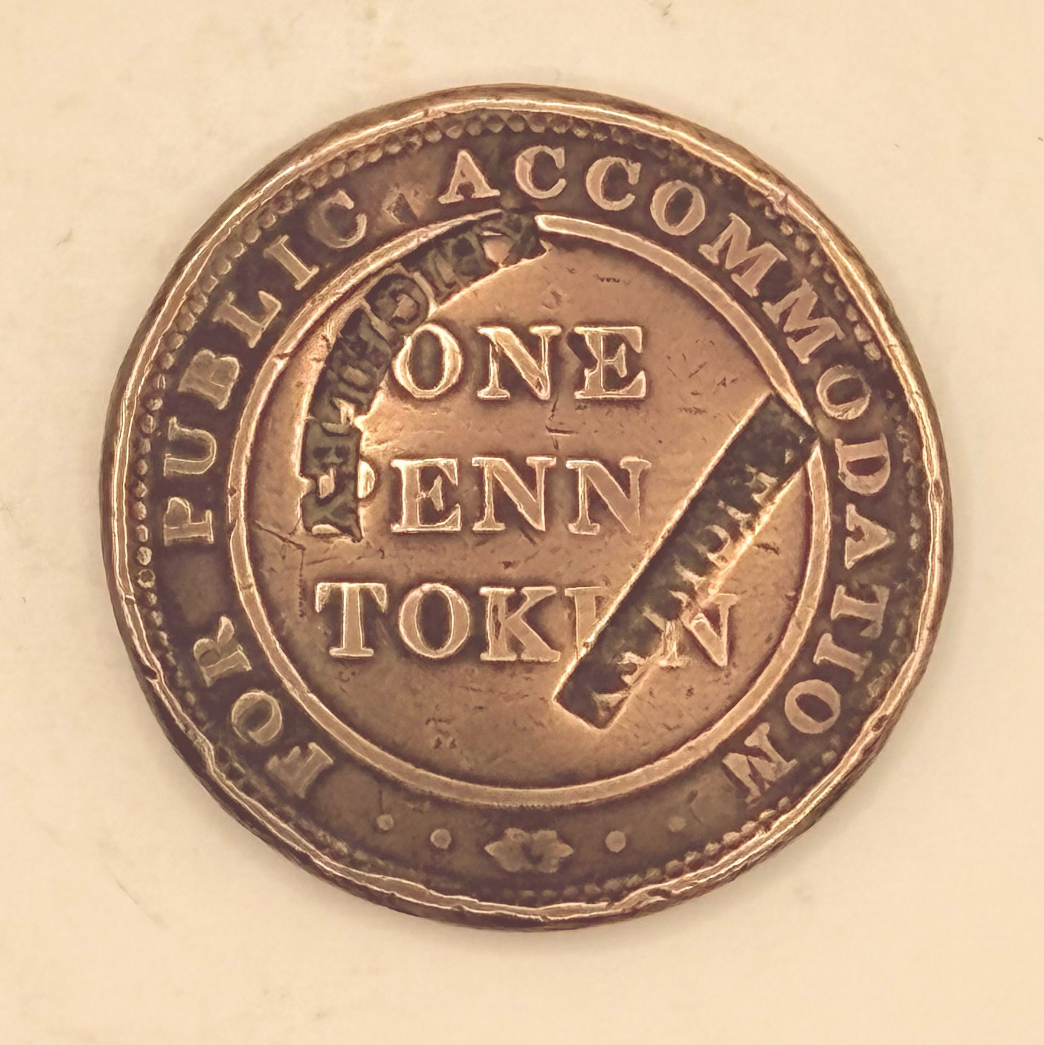 Overstruck ‘Keighley’ one penny token for Public accommodationContext