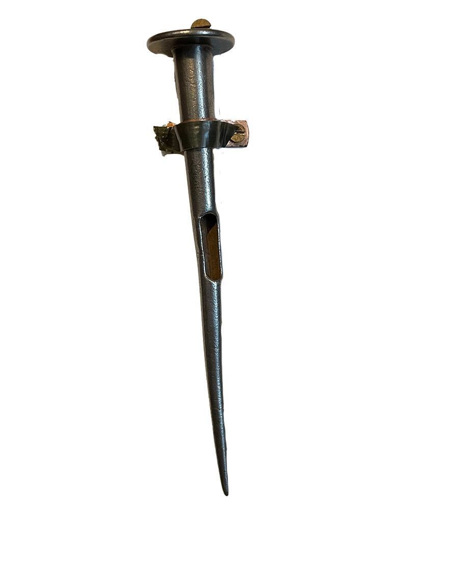 The blade and sheath were inserted between two particular ribs and the blade is then withdrawn leaving the sheath as a funnel to withdraw the gas. This object is made of metal.Cataloged By