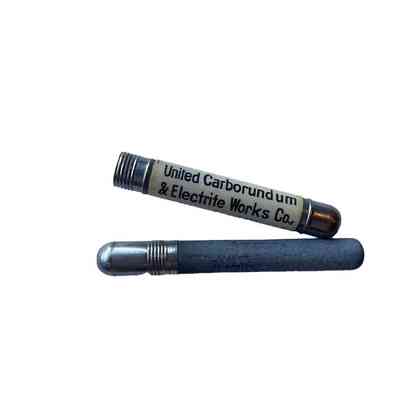 Circular metal tube with a screw top containing a round stick-like file, made of artificial corundum.