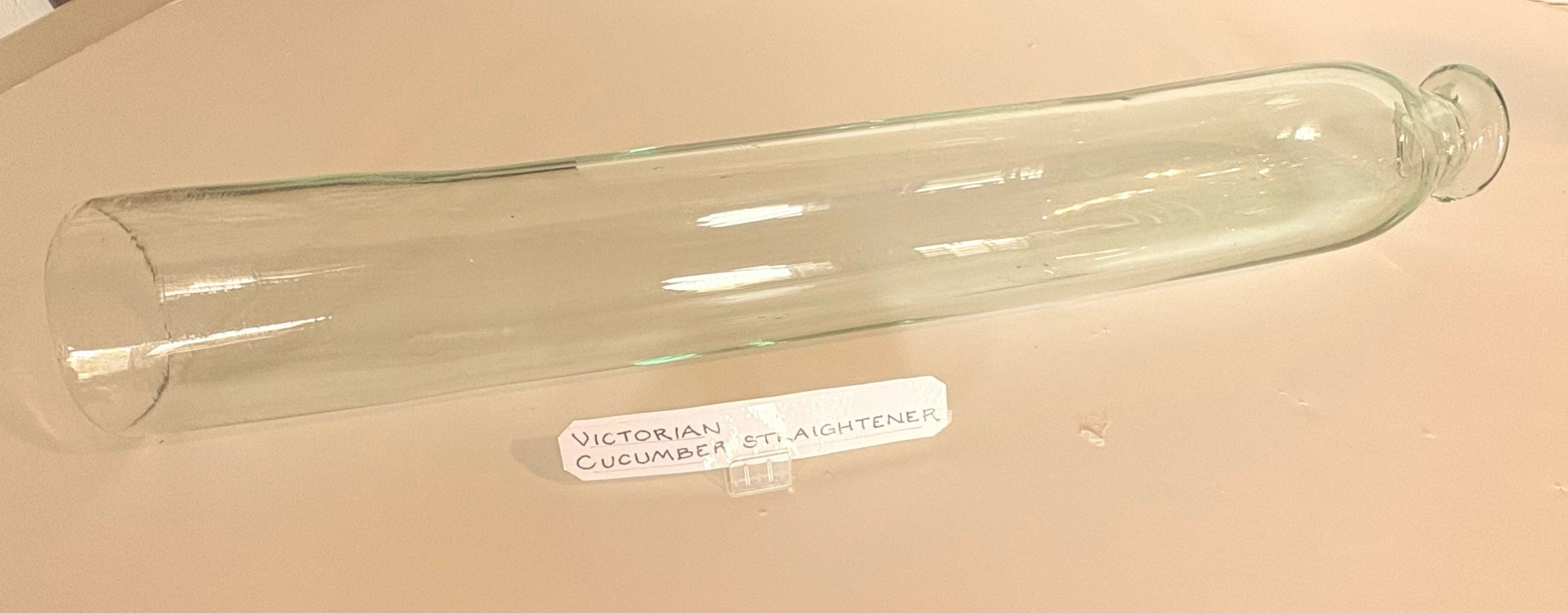 The cucumber straightener was invented by the great engineer George Stephenson (1781–1848), a keen fruit grower who took great pride in the growth of his cucumbers. Stephenson ordered blown glass cylinders to be made at his Newcastle steam engine factory for his garden at Tapton House, Derbyshire, where he spent the last ten years of his life. The elongated glass funnel was placed over the cucumber at an early stage to encourage the fruit to grow straight. Technological innovations in the 19th century had a great impact on food production in Britain. The straight cucumber, a purely aesthetic advancement, symbolises the Victorian obsession with rationalising nature.Cataloged By