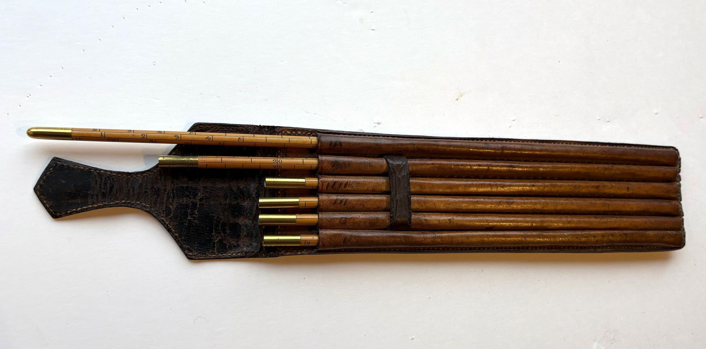 Glenlivet Whiskey Cask measuring sticks in a leather sleeveCataloged By