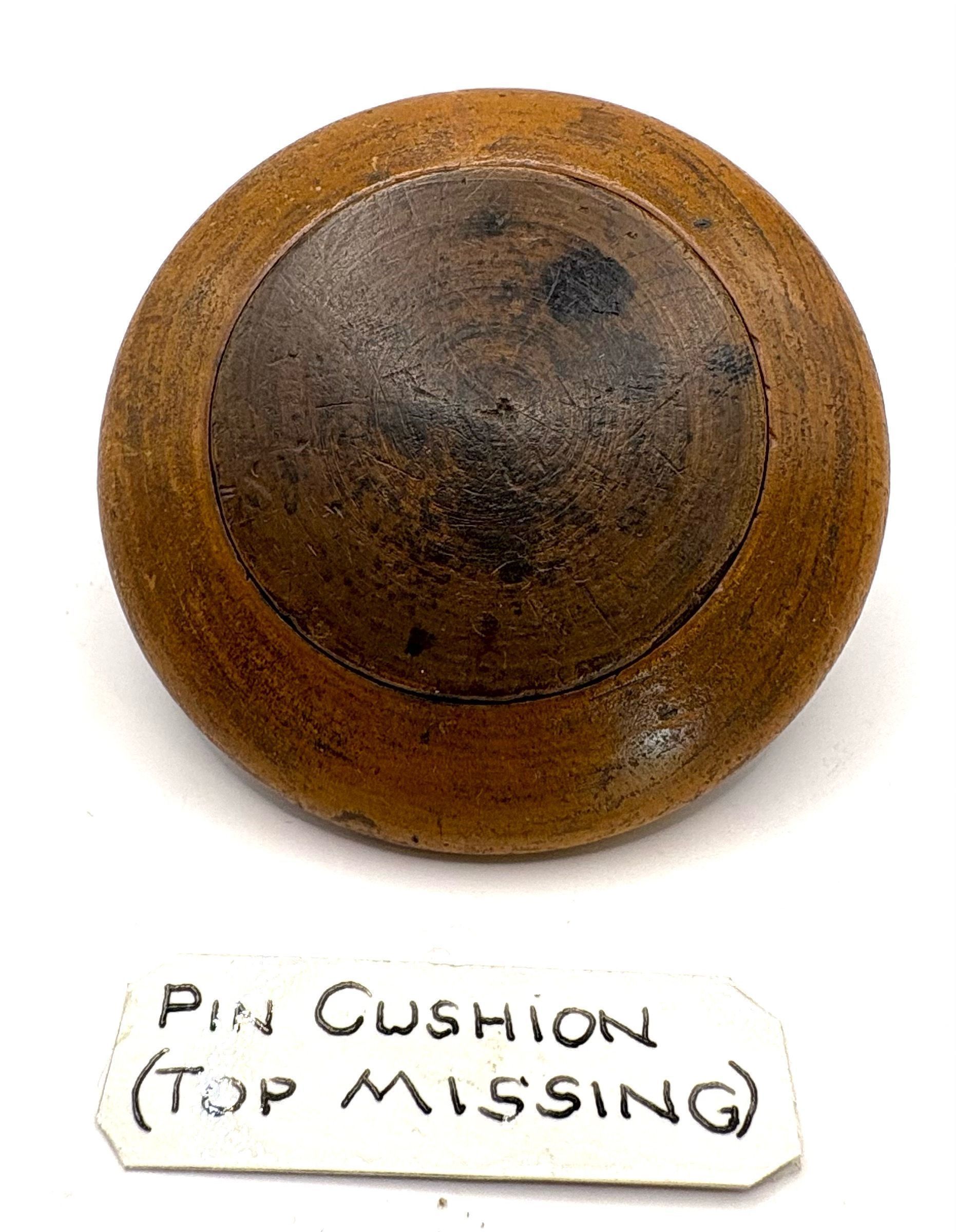 Wooden part of a pin cushion with the top missing