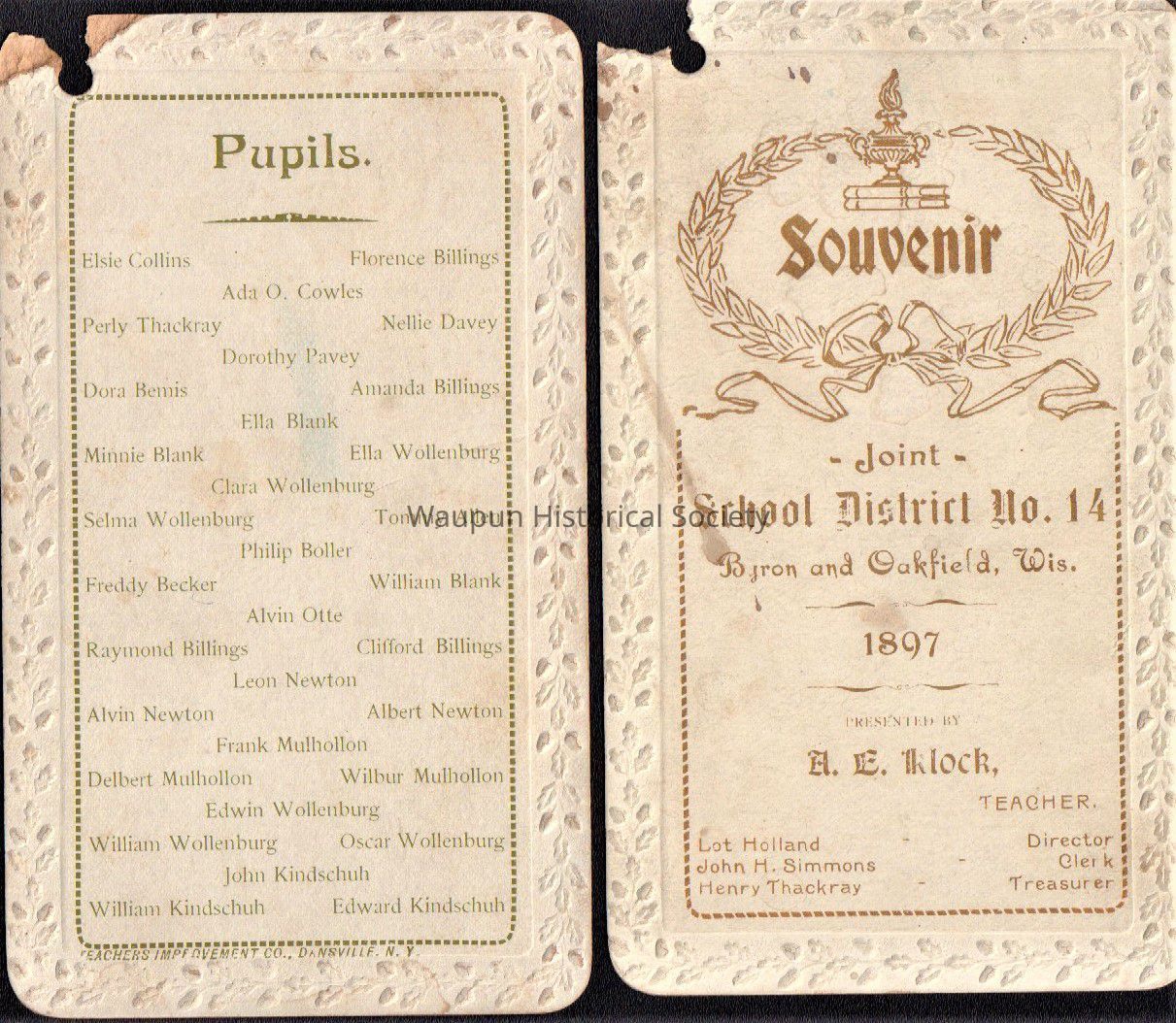 (1897) School District No. 14 Byron & Oakfield, Wis.Acquisition