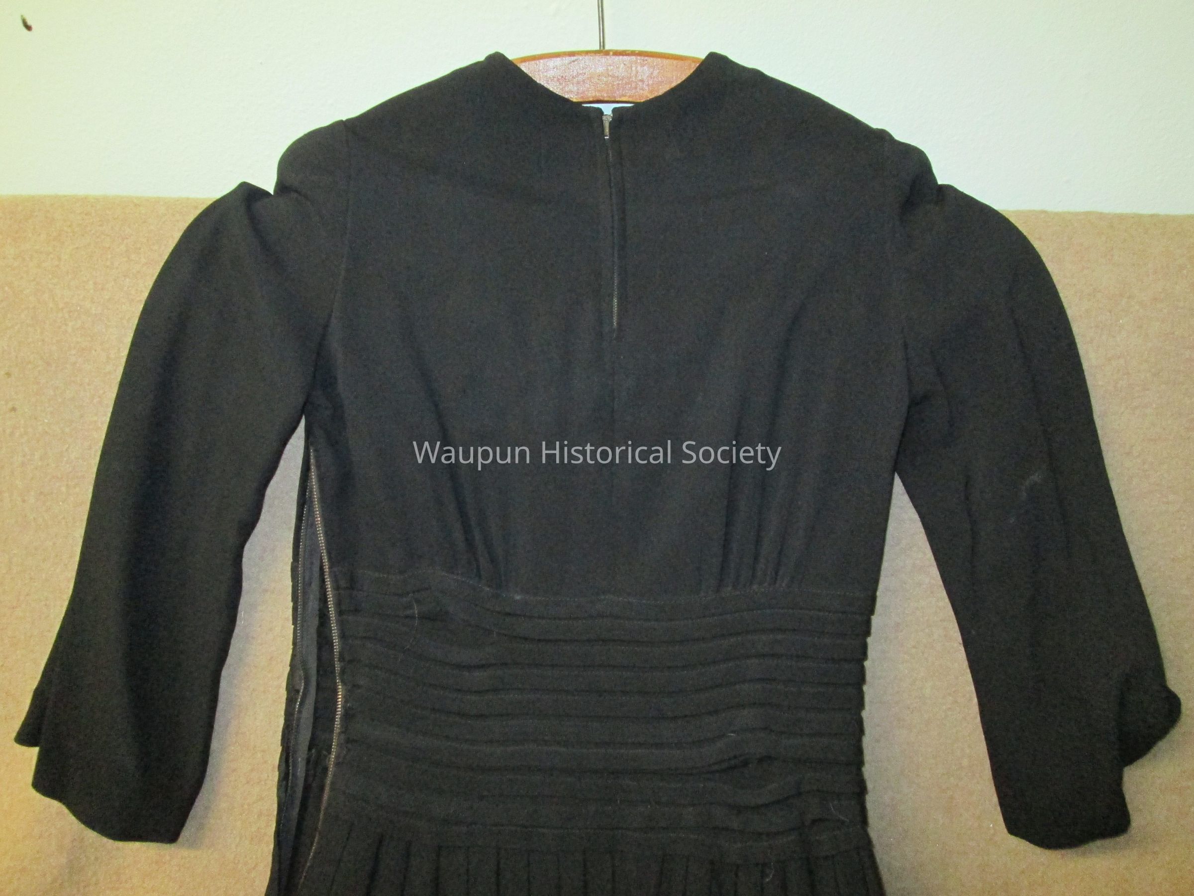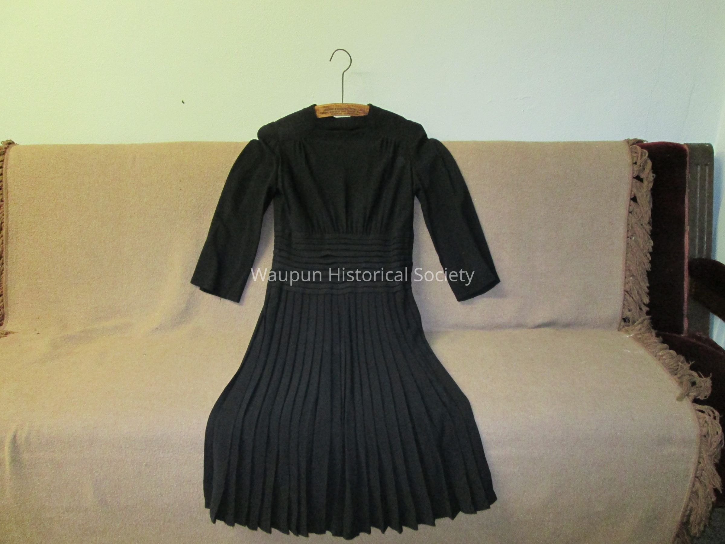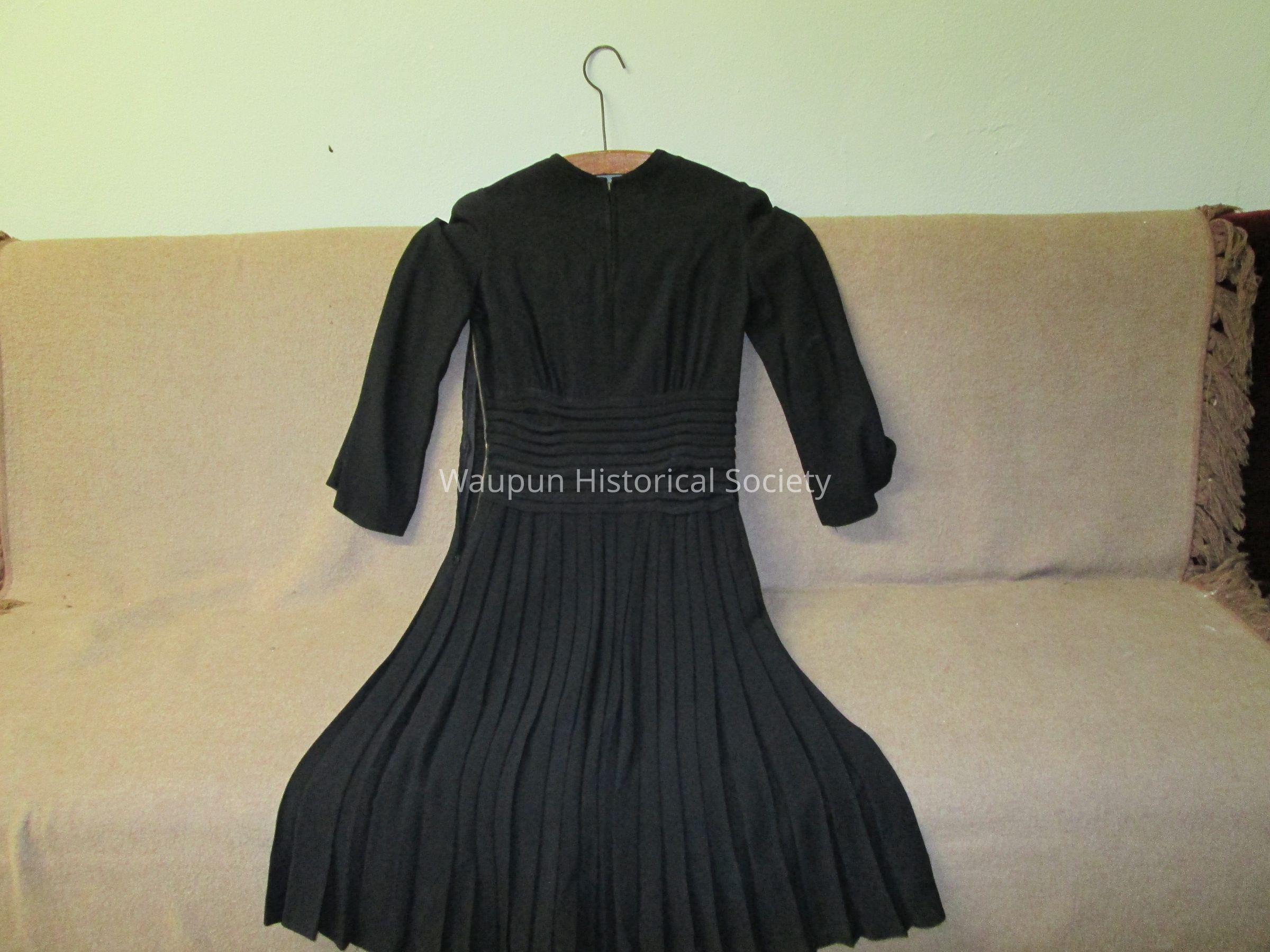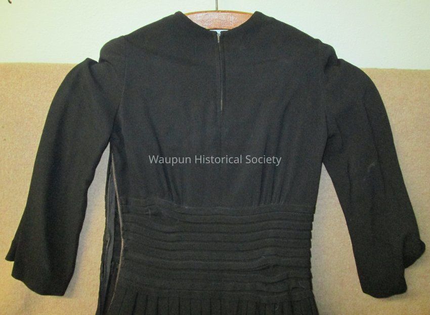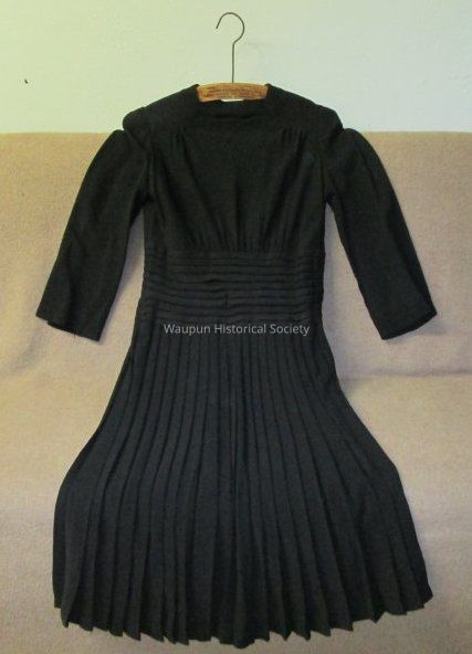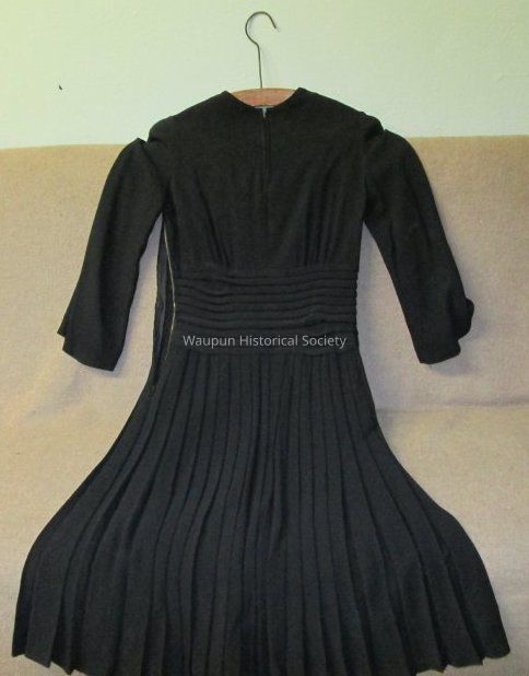 1 Black dress from about the 1930's given to Julene Kikkert by Mrs. Stoddart of Waupun