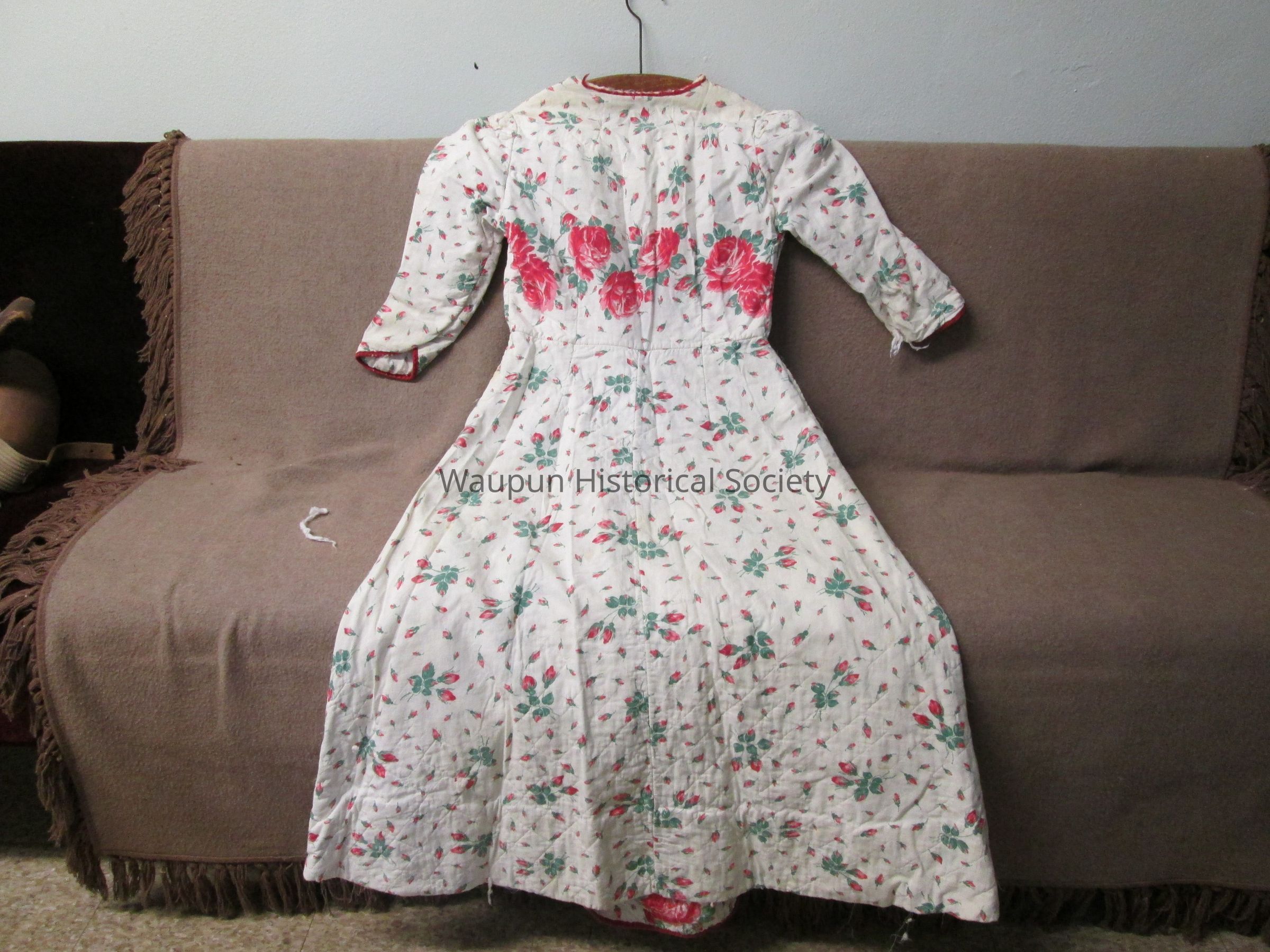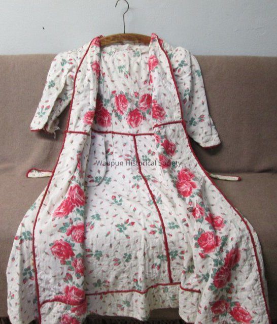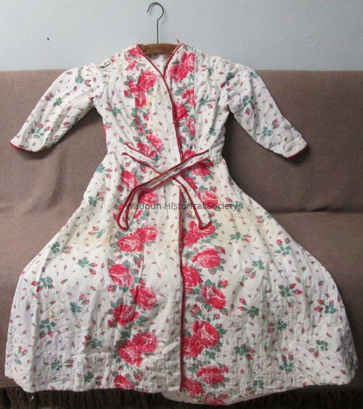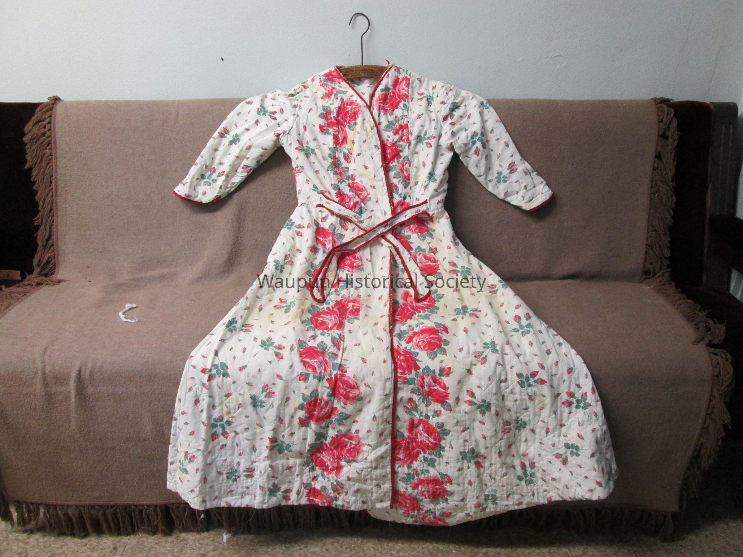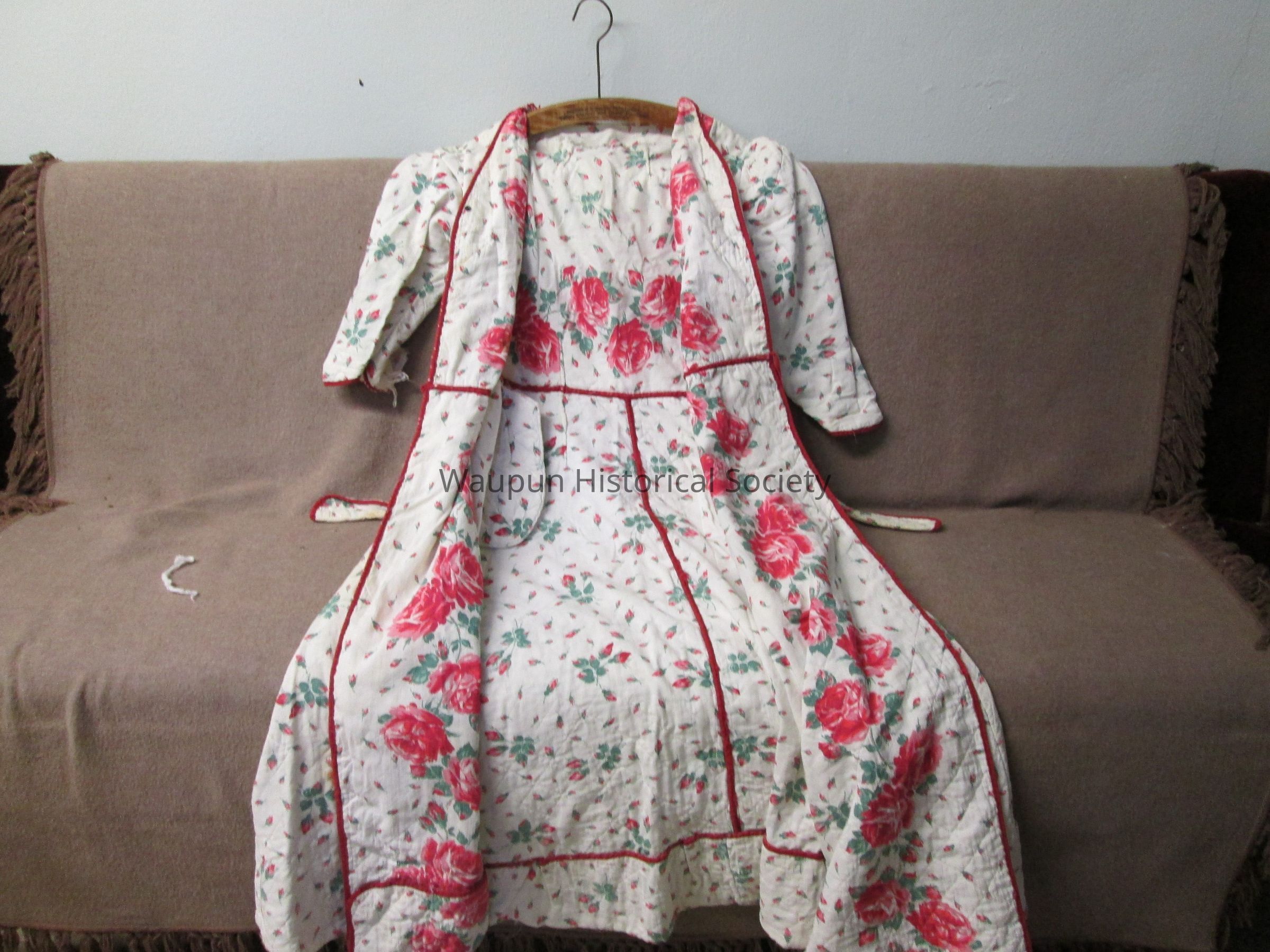 1 floral bathrobe given to Julene Kikkert by Mrs. Margaret Niles who was a school teacher in Waupun in the 1960s.