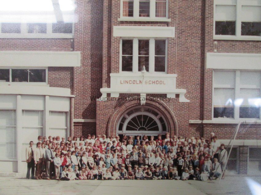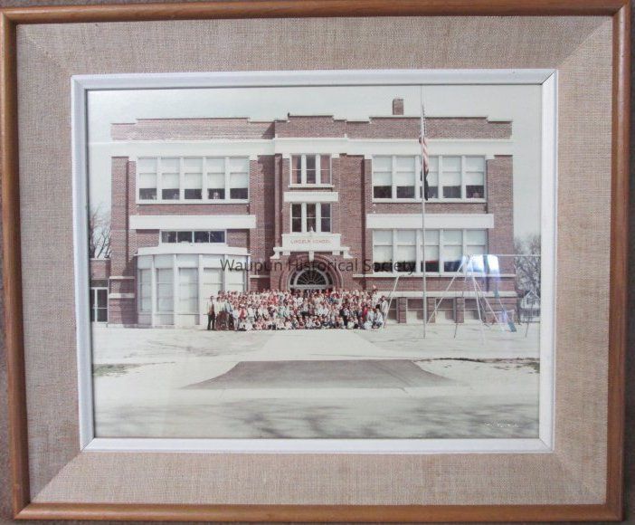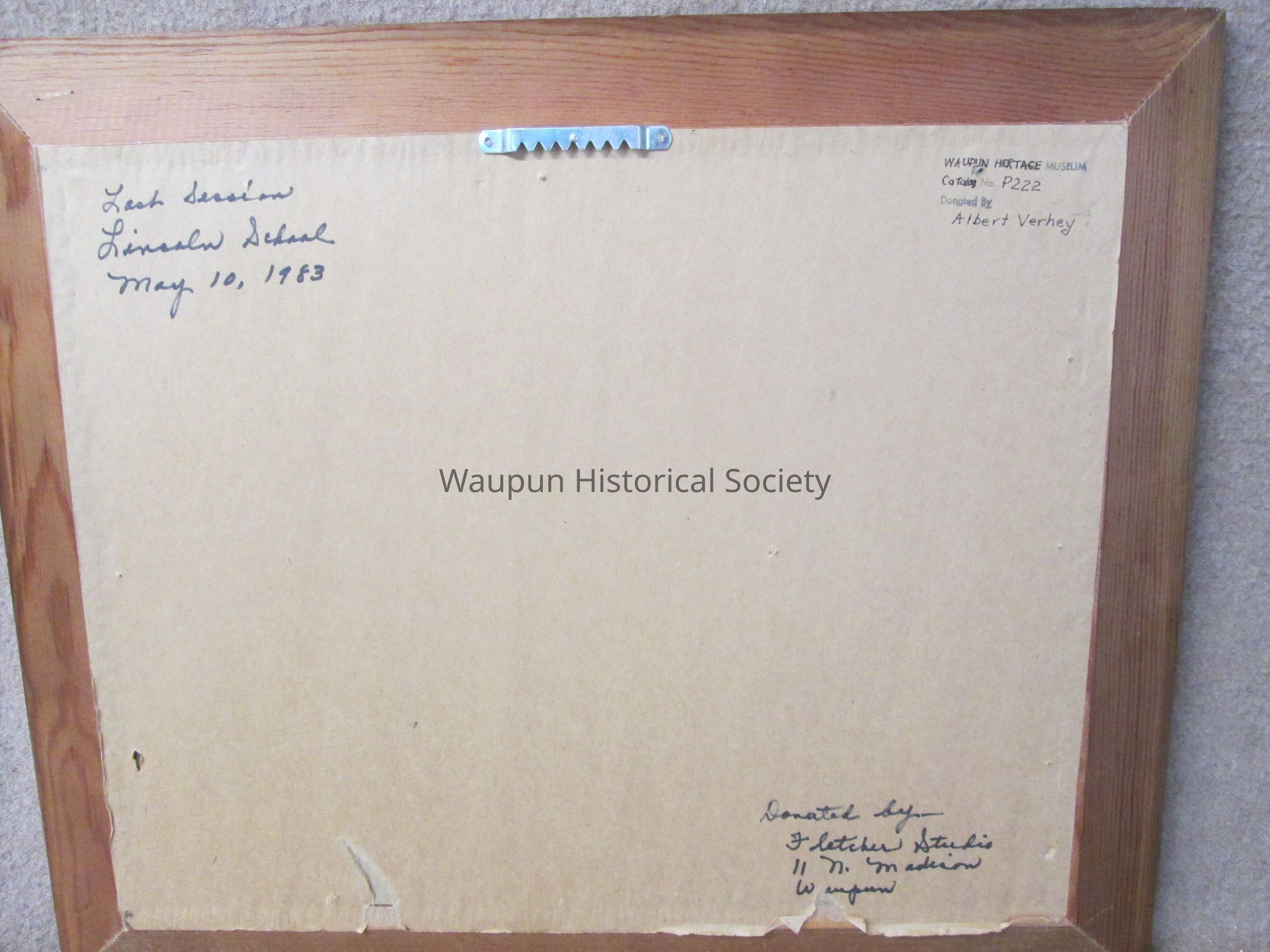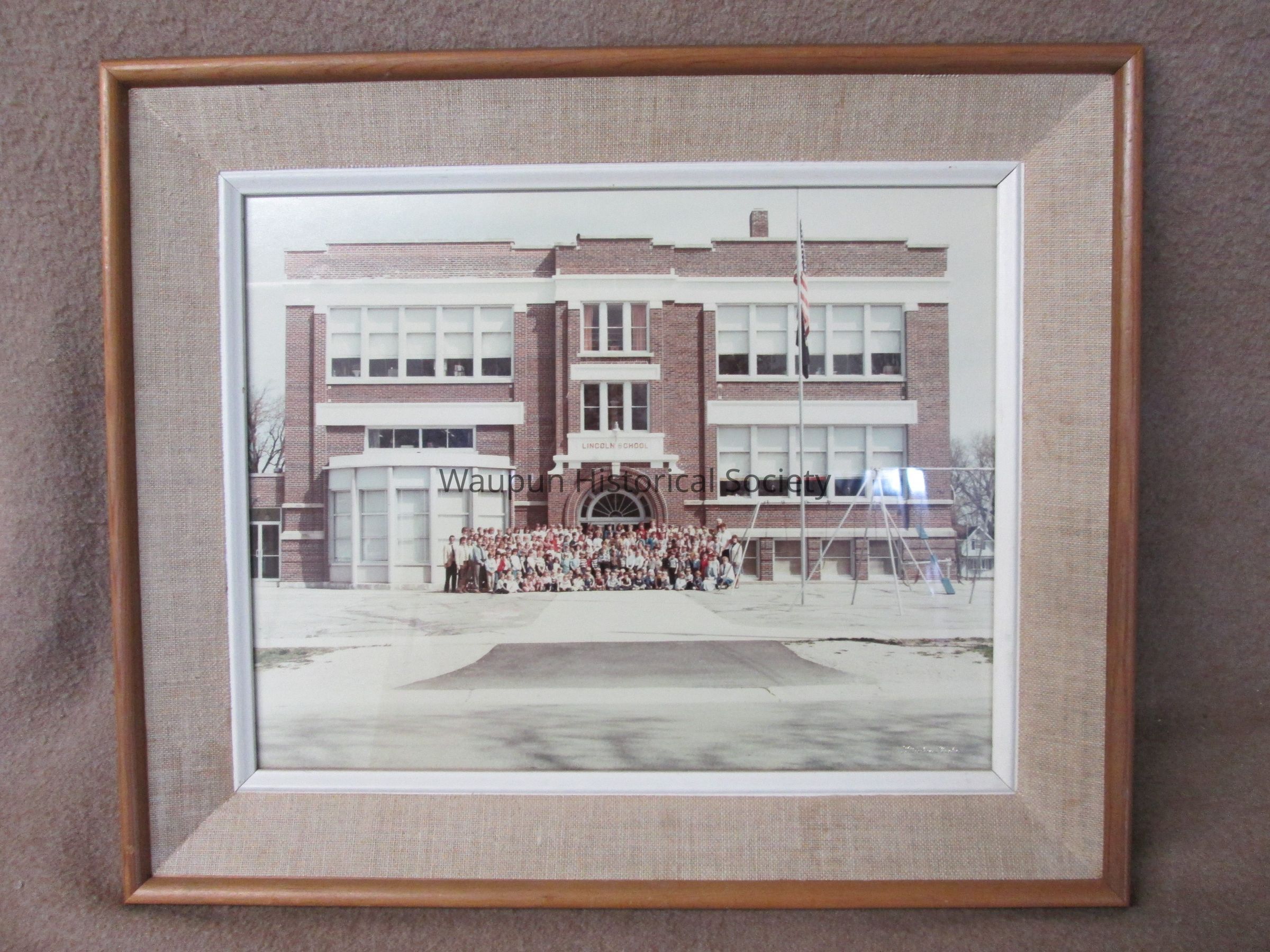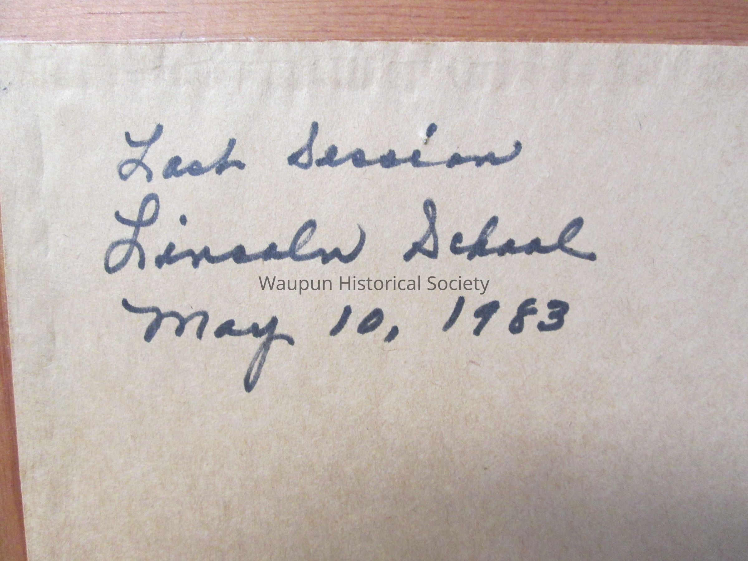 Framed photo of last session of Lincoln School, May 10, 1983 with all the students and faculty who attended school that year. Photo taken by Fletcher Studio and donated by them to Albert Verhey who donated it to the museum; Catalog No. P222.Acquisition