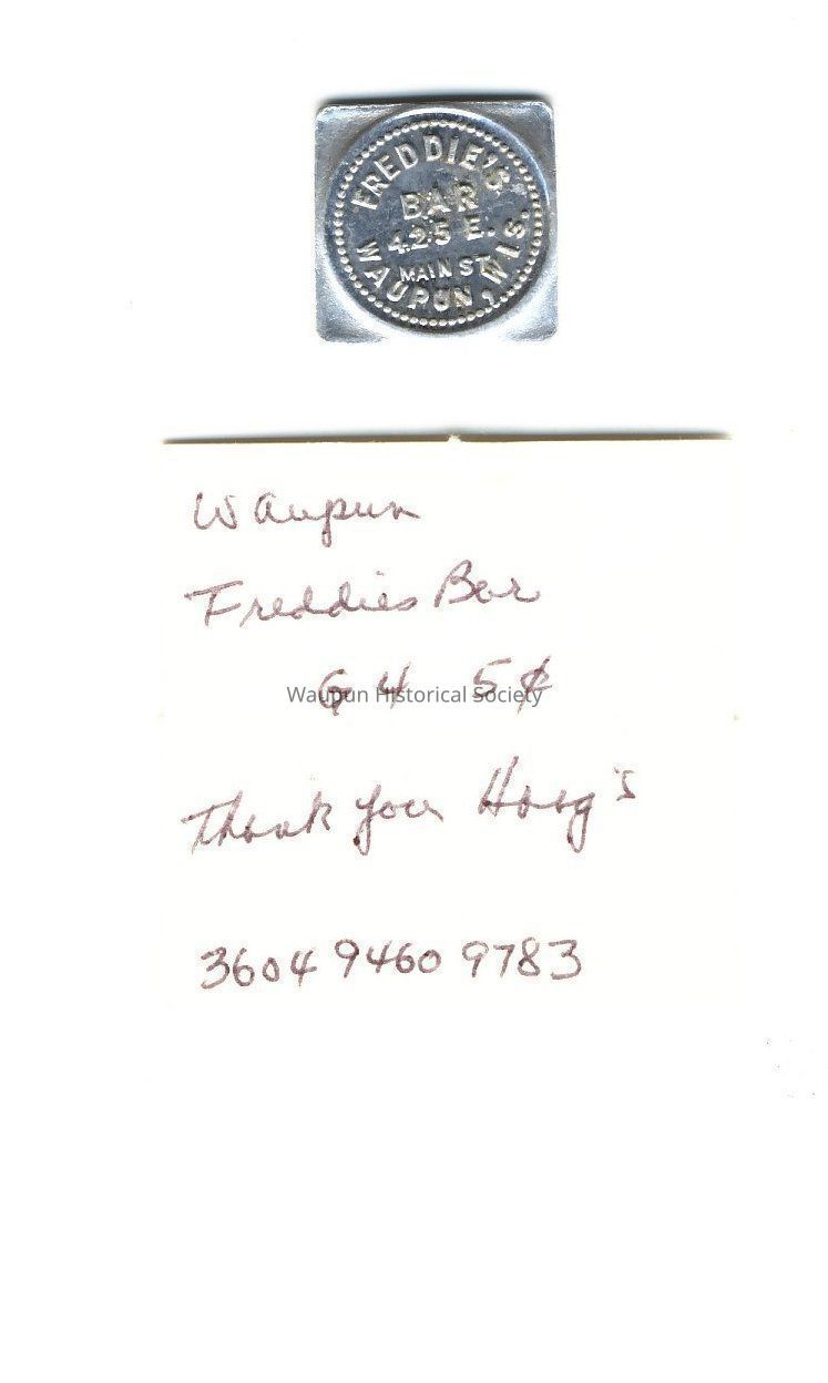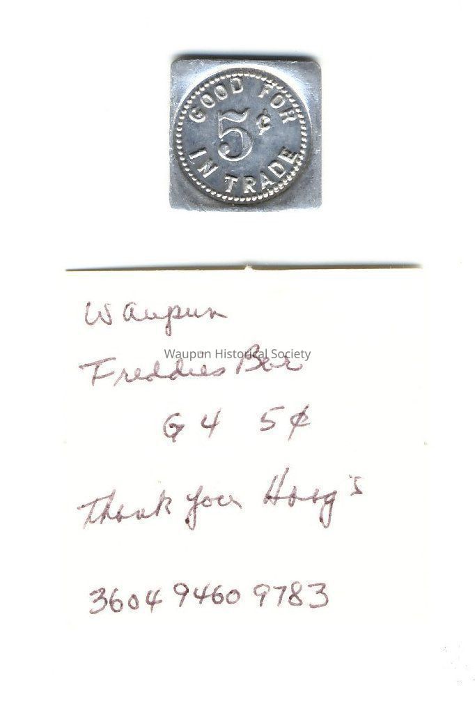 Good For 5c in Trade from Freddie's Bar, 425 E. Main, Waupun, Wis
