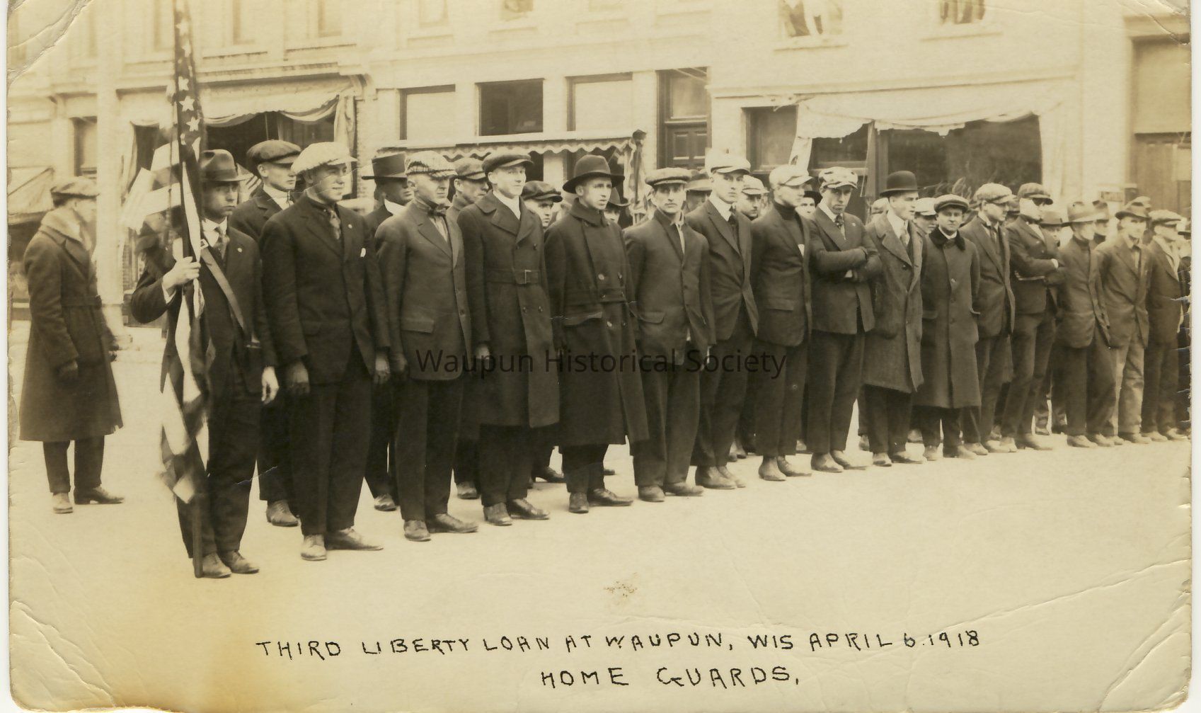 Home Guards. This postcard has the following written on the front. "Third Liberty Loan at Waupun, Wis. April 16, 1918 Home Guards." On the back of the postcard is written the name: Forest WildAcquisition