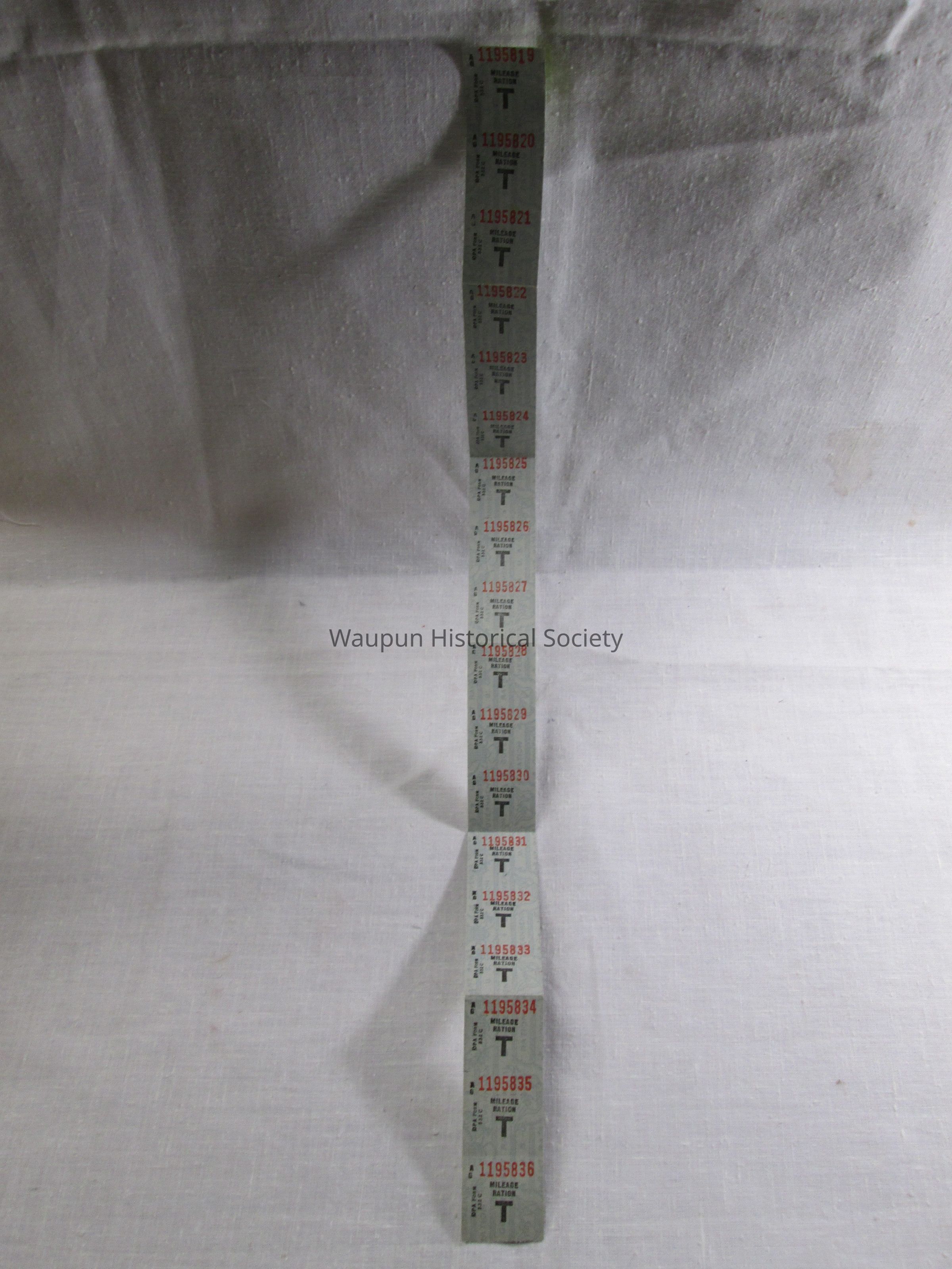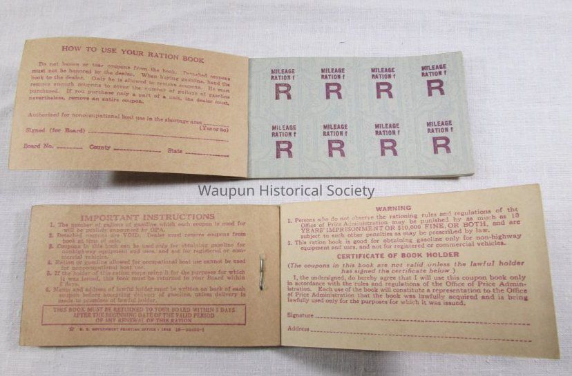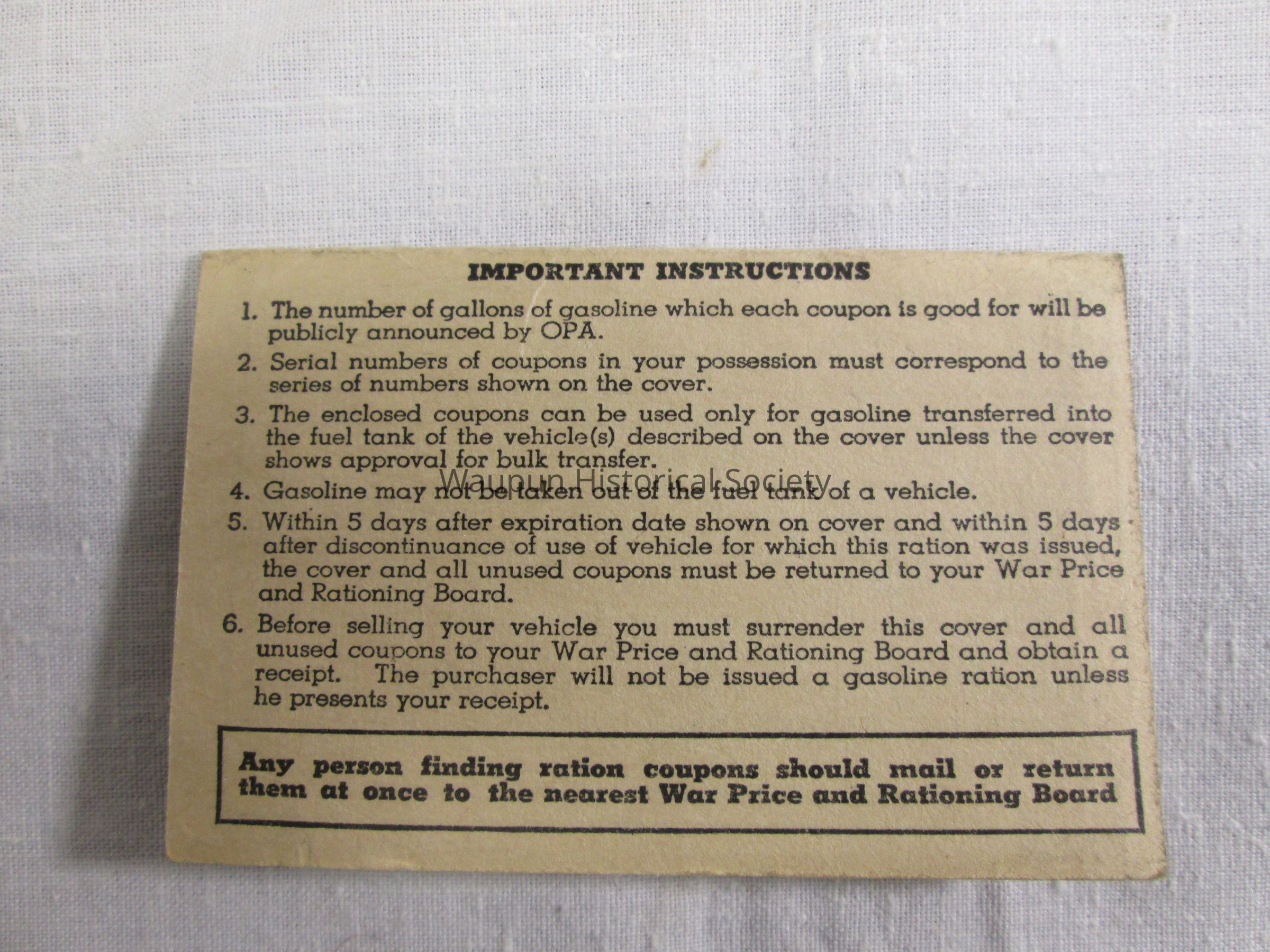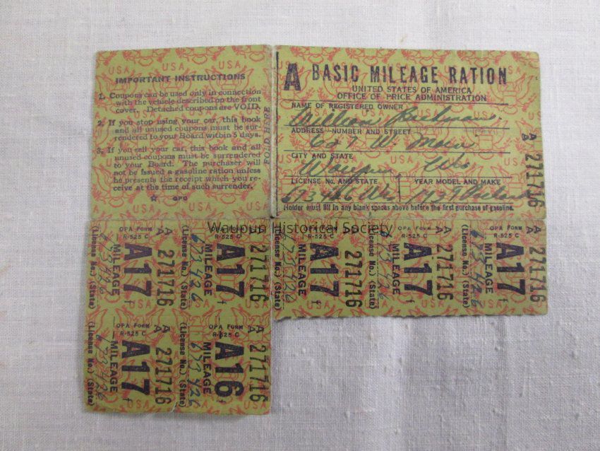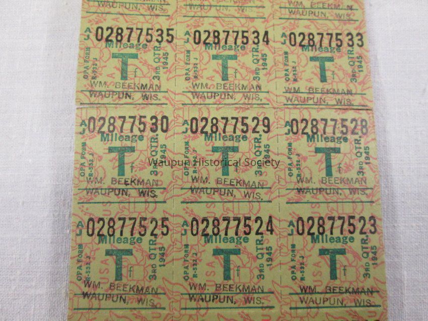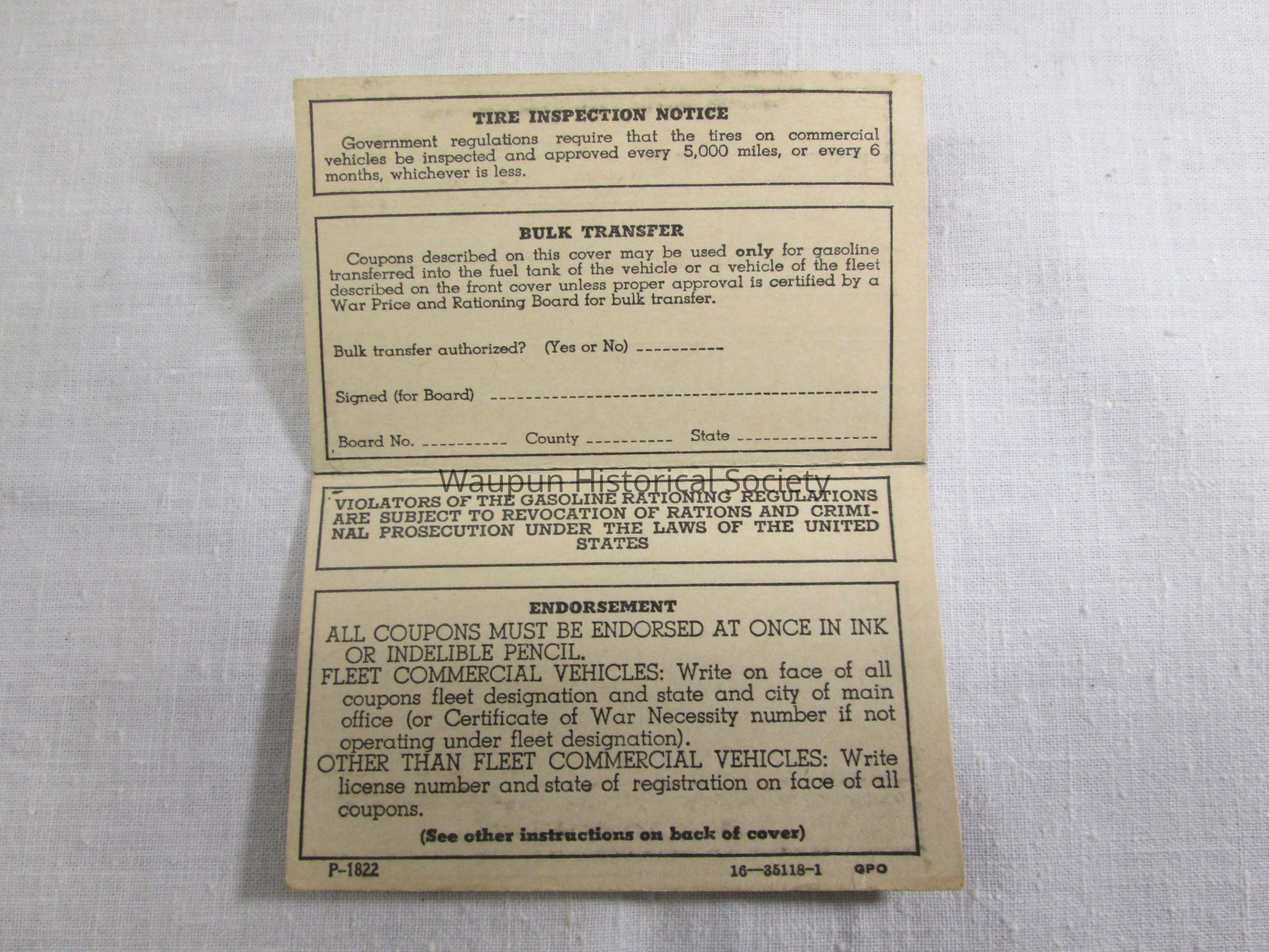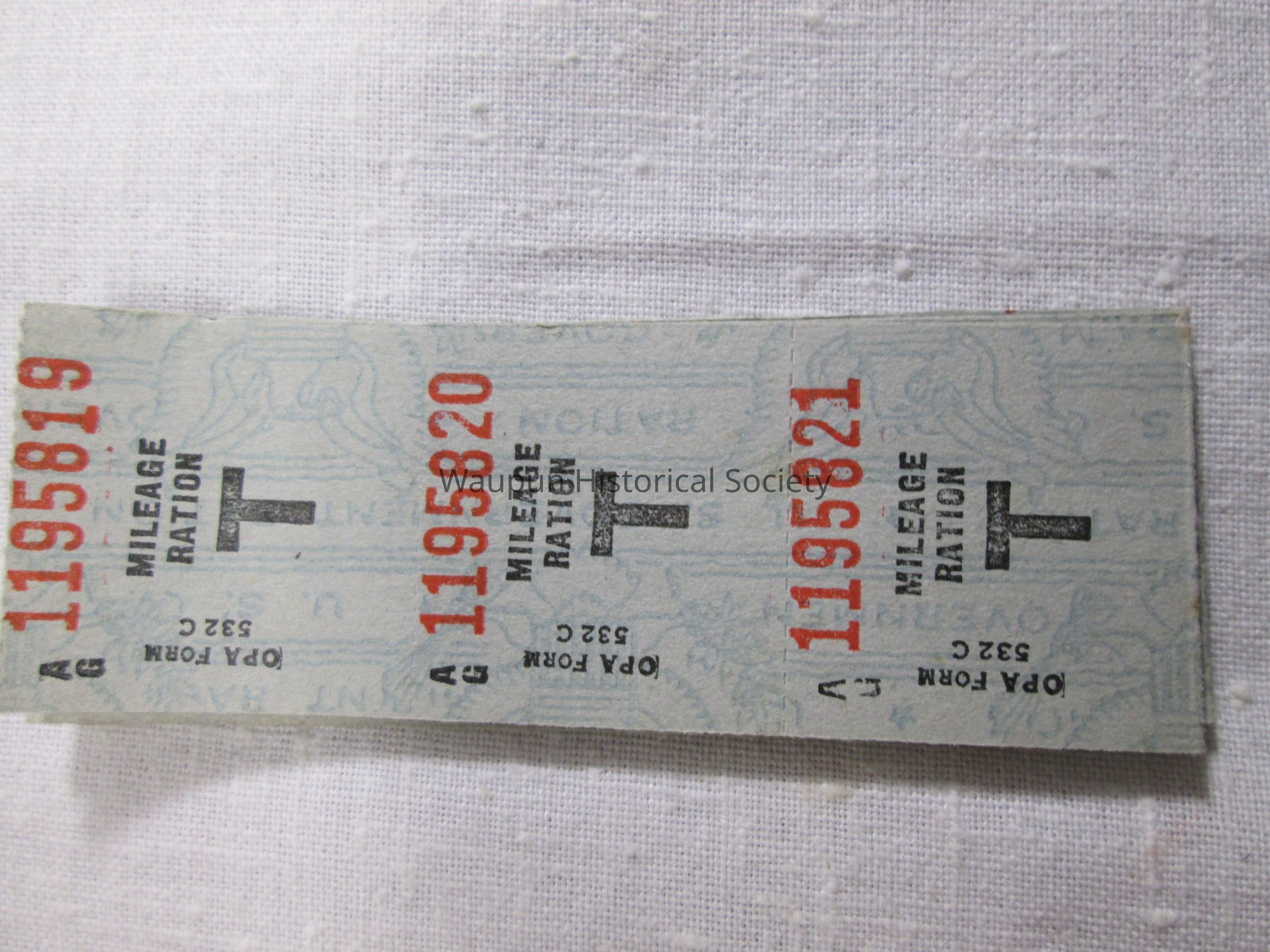 Red hinged plastic box containing books of ration tickets, 3 Nonhighway R Rations books, 4 T-1 Transport Mileage Ration books, Mileage Ration Identification Folder with instructions for use of rations, Rations Identification Card, Seven A17 Mileage Rations with Identification Card attached and 18 Mileage T Ration. One B Milage Ration Sticker.Acquisition