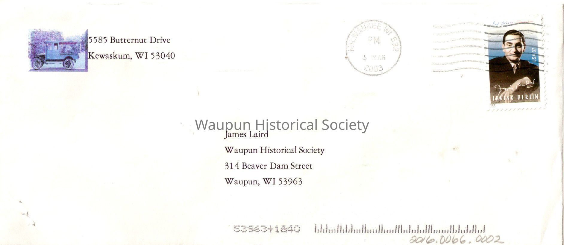 Envelope for letter from "Tin Lizzies"Entry/Object ID