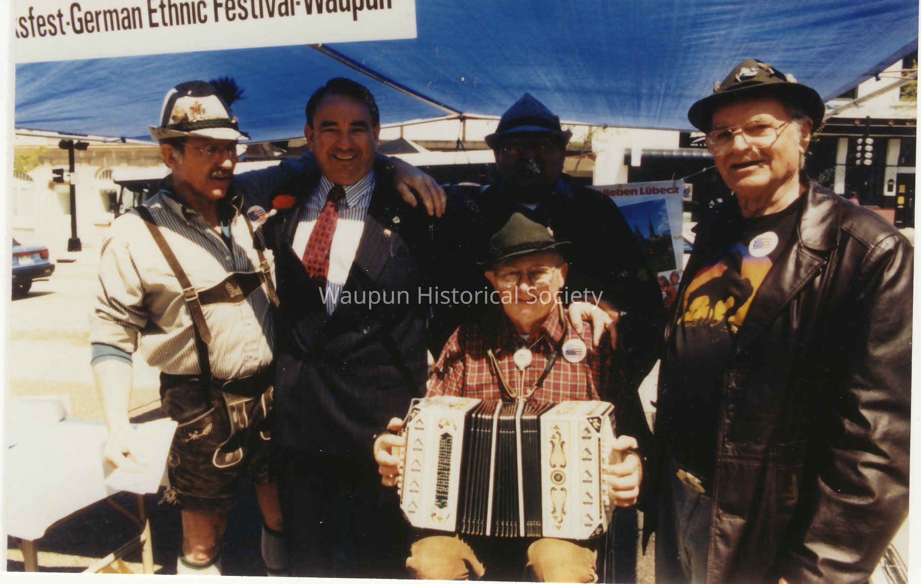 Volksfest. FROM L to R: John Braatz, Gov. Tommy Thompson, Gene Buchholz, Donnie Kehrmeyer, Carl Weamar.Acquisition