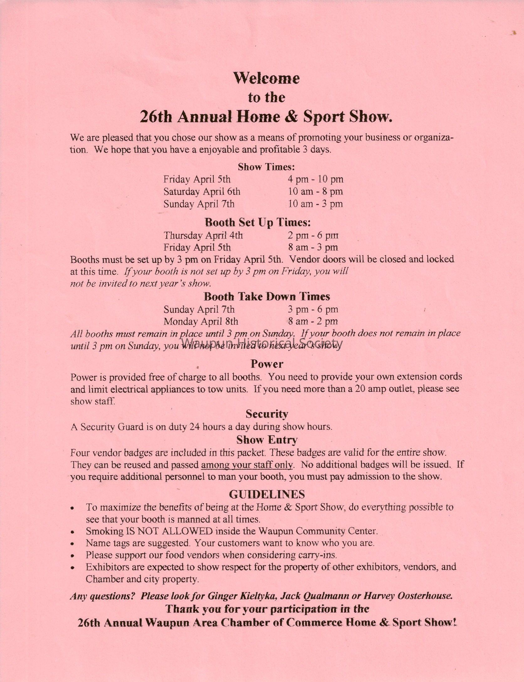 Thank you for your participation in the 26th Annual Waupun Area Chamber of Commerce }Iome &. Sport. Show!Acquisition