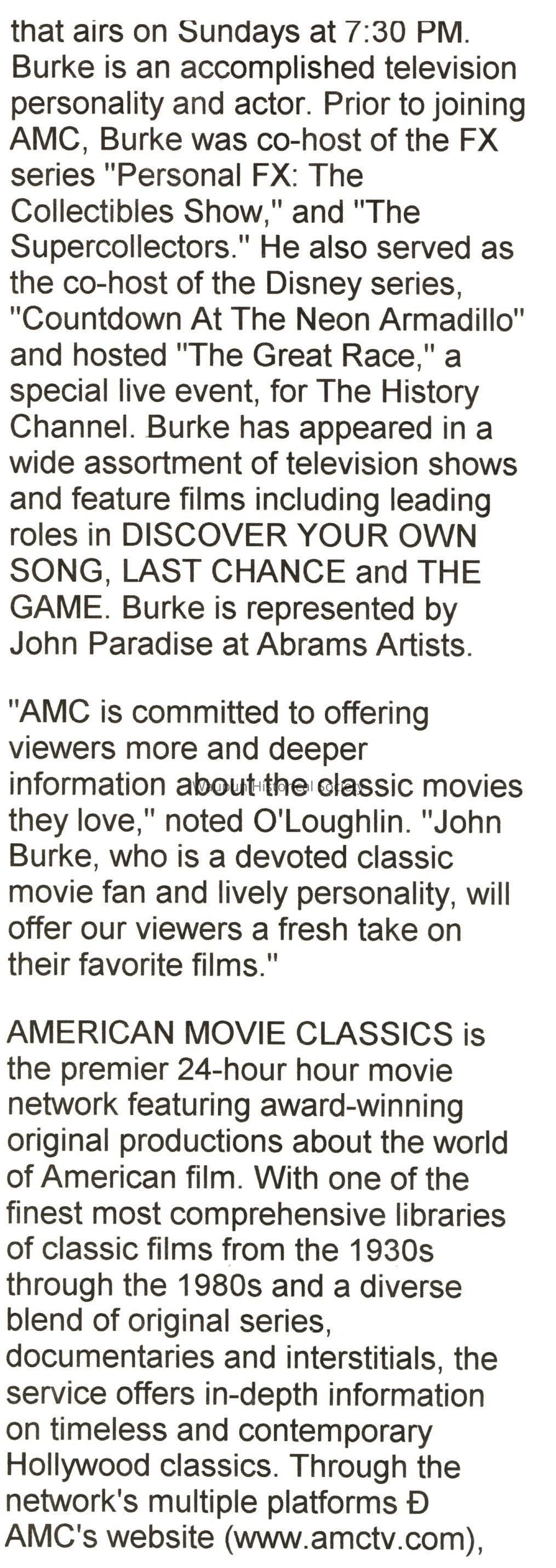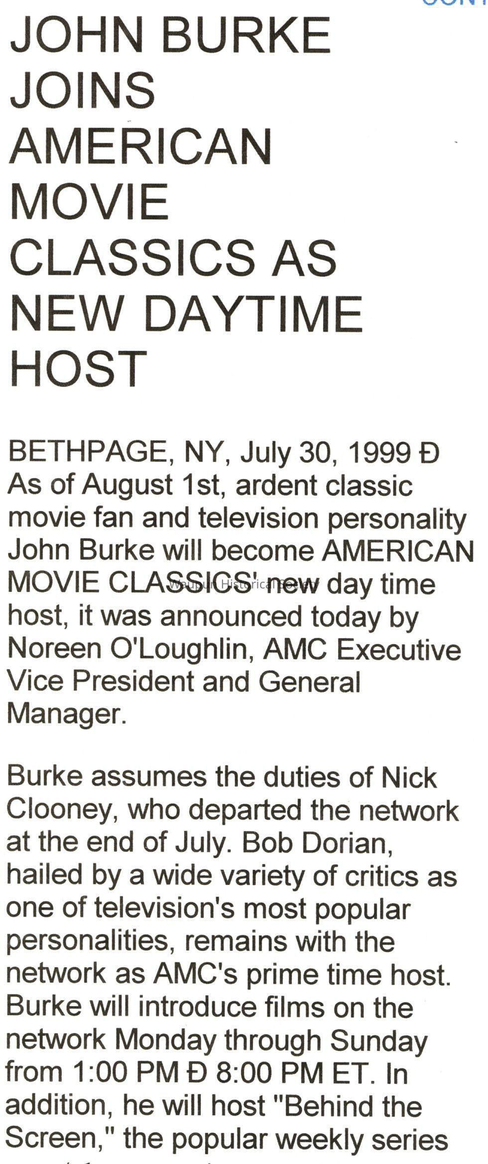John Burke Joins American Movie Classics As Daytime Host from the AMC Press Release July 30, 1999