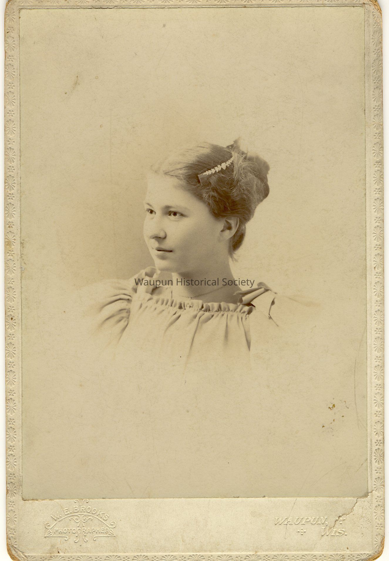 Cabinet Card, Brooks, Cabinet Photo Portrait. Caption on the back reads: Rose Rossman March 4 - '96 Built house Welks live in.Acquisition