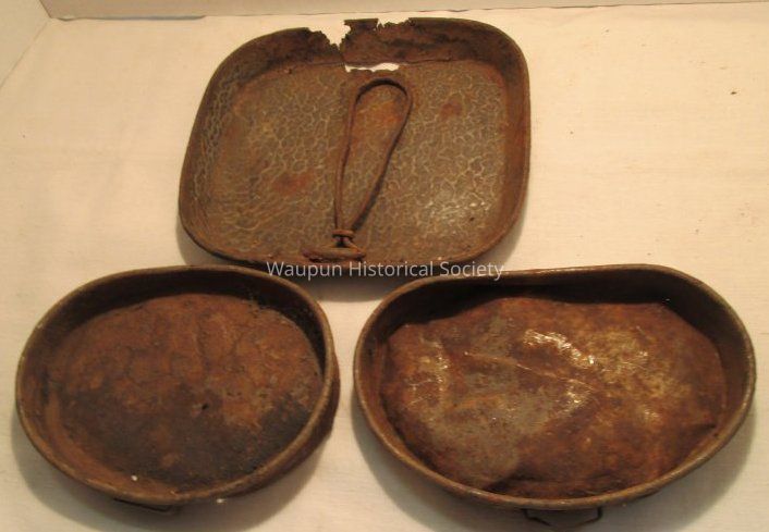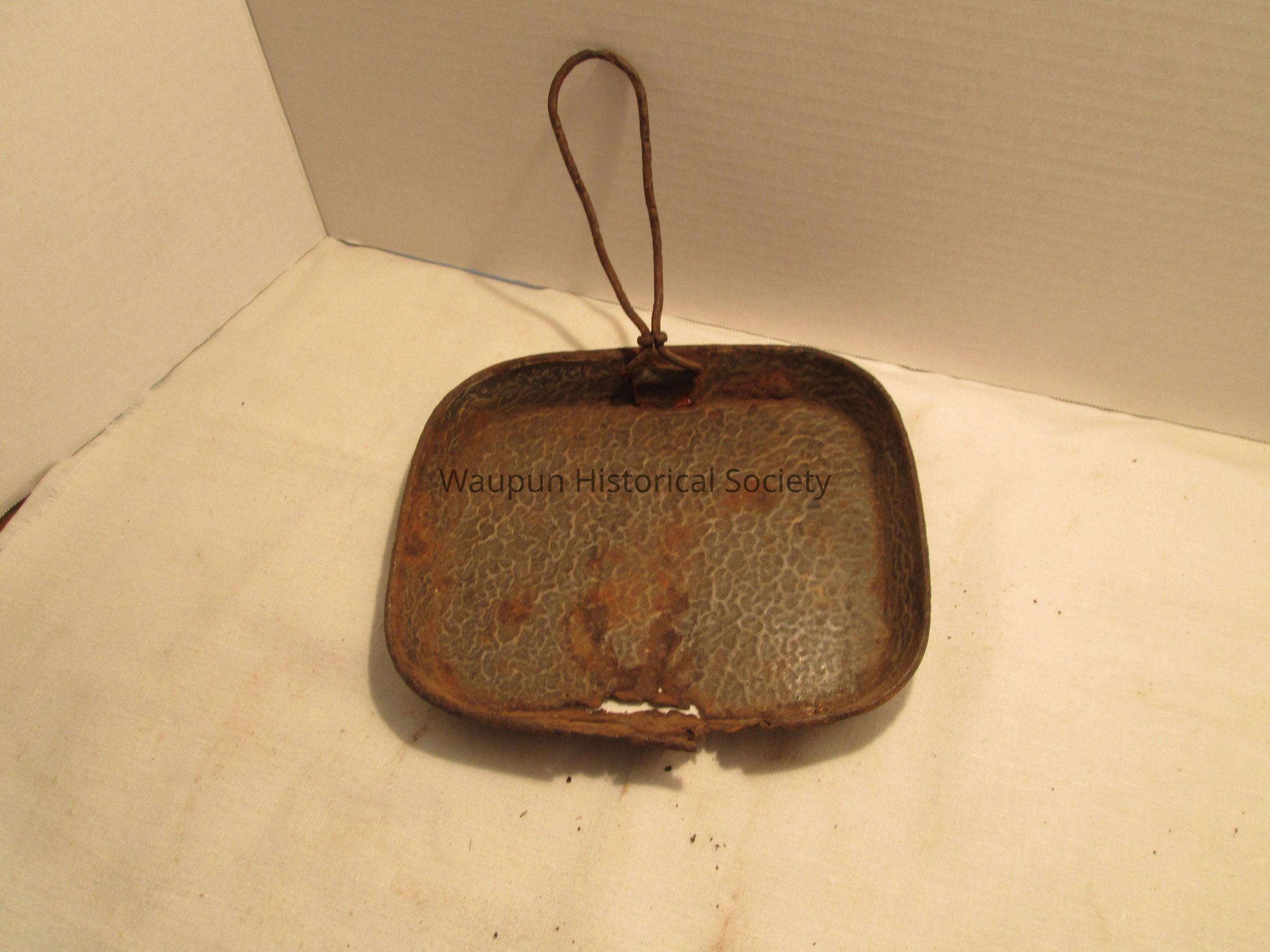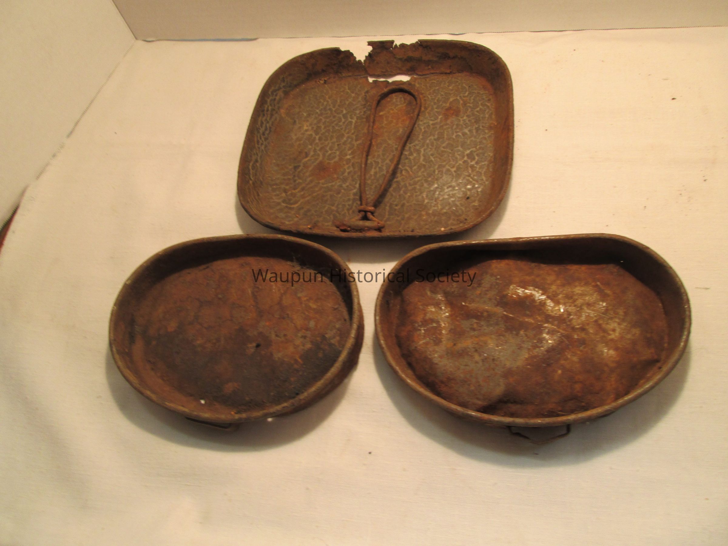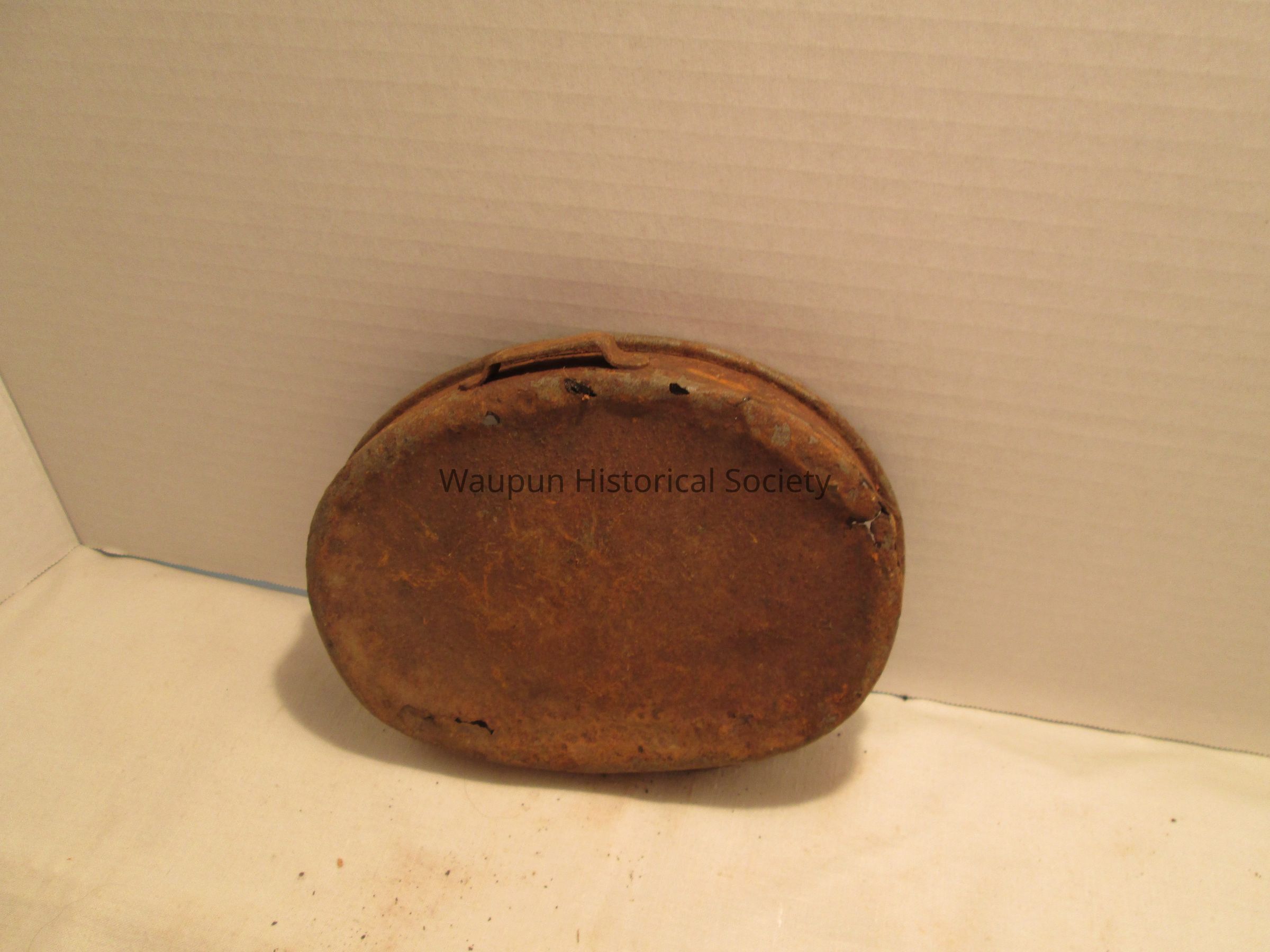 WW1 Debris - Rusty Oval Shaped Dish. Probably used as a dish for eating. Has small handle on outer rim.Acquisition
