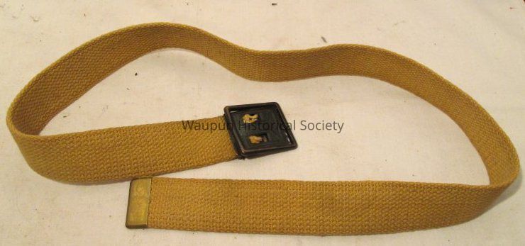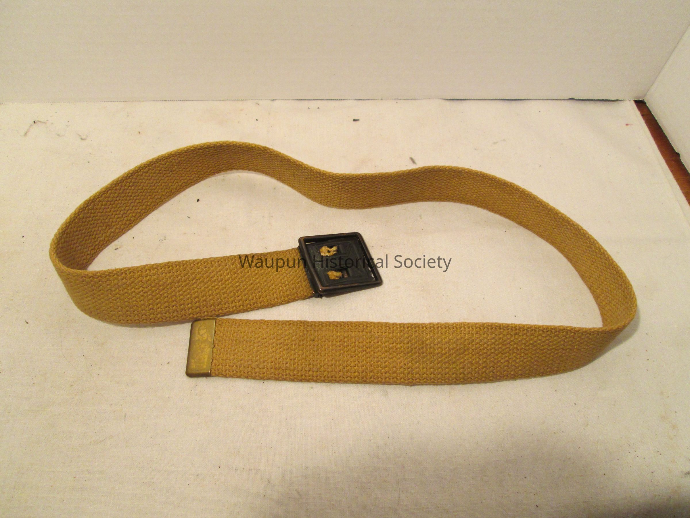 Tan U.S. army belt with metal closure. Possibly worn by Dial Gray.