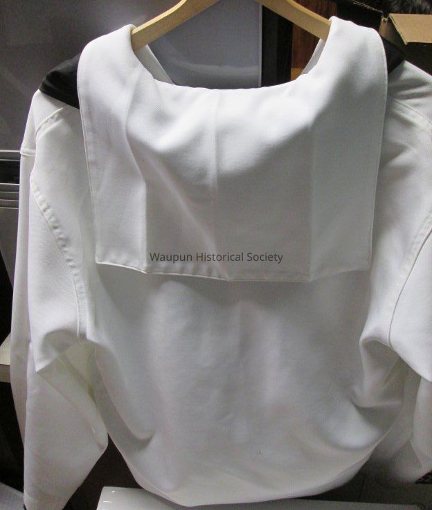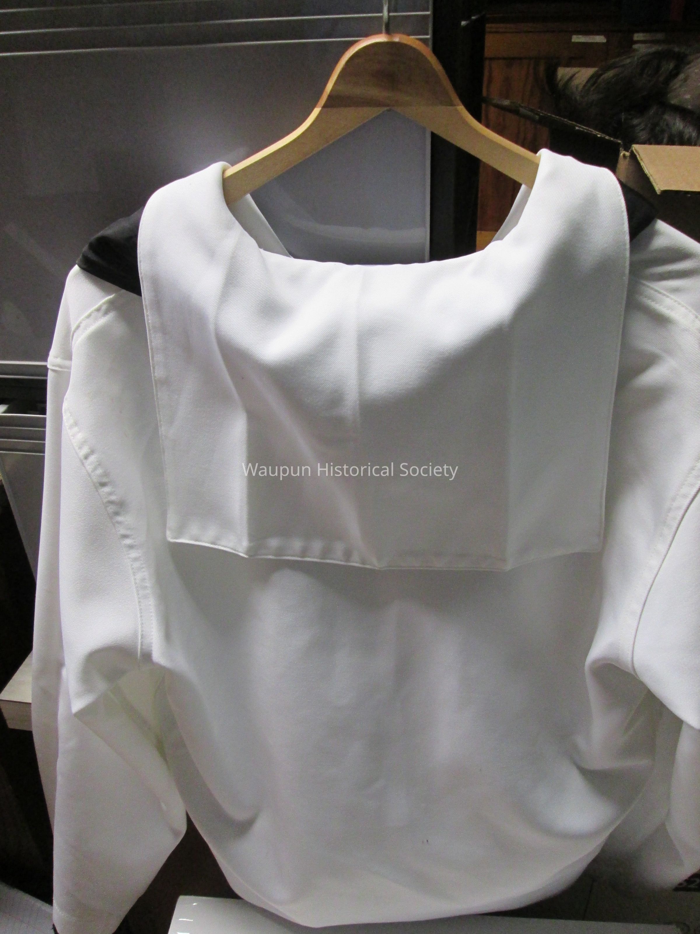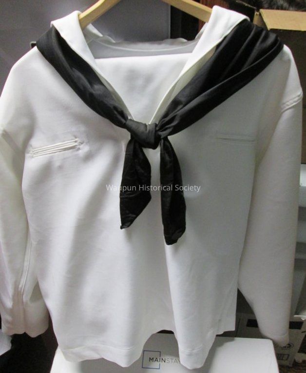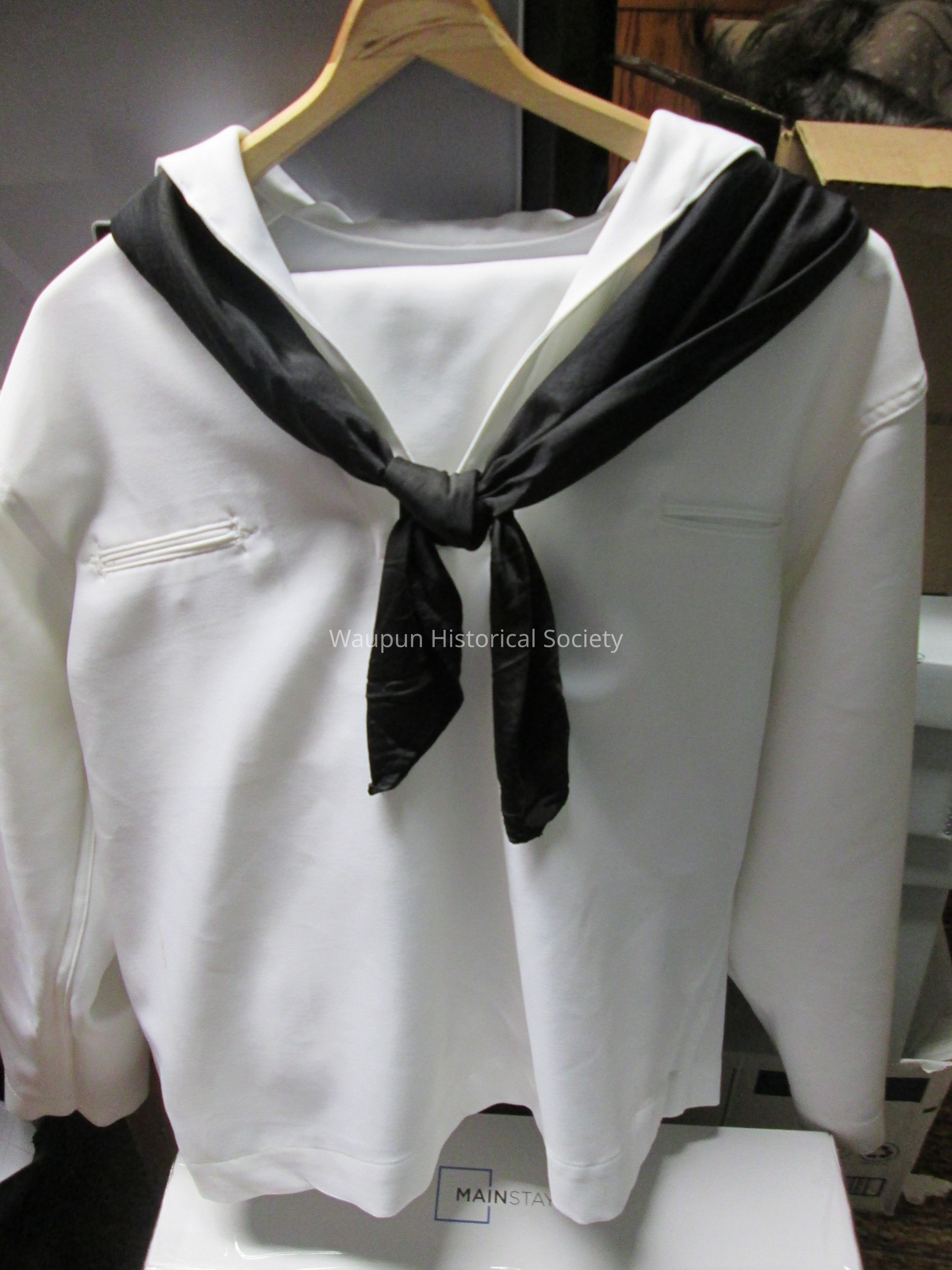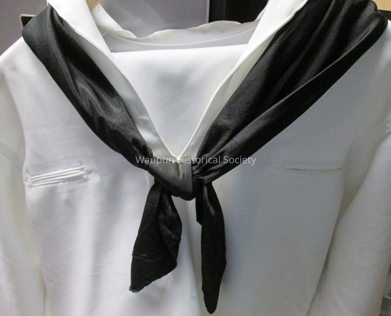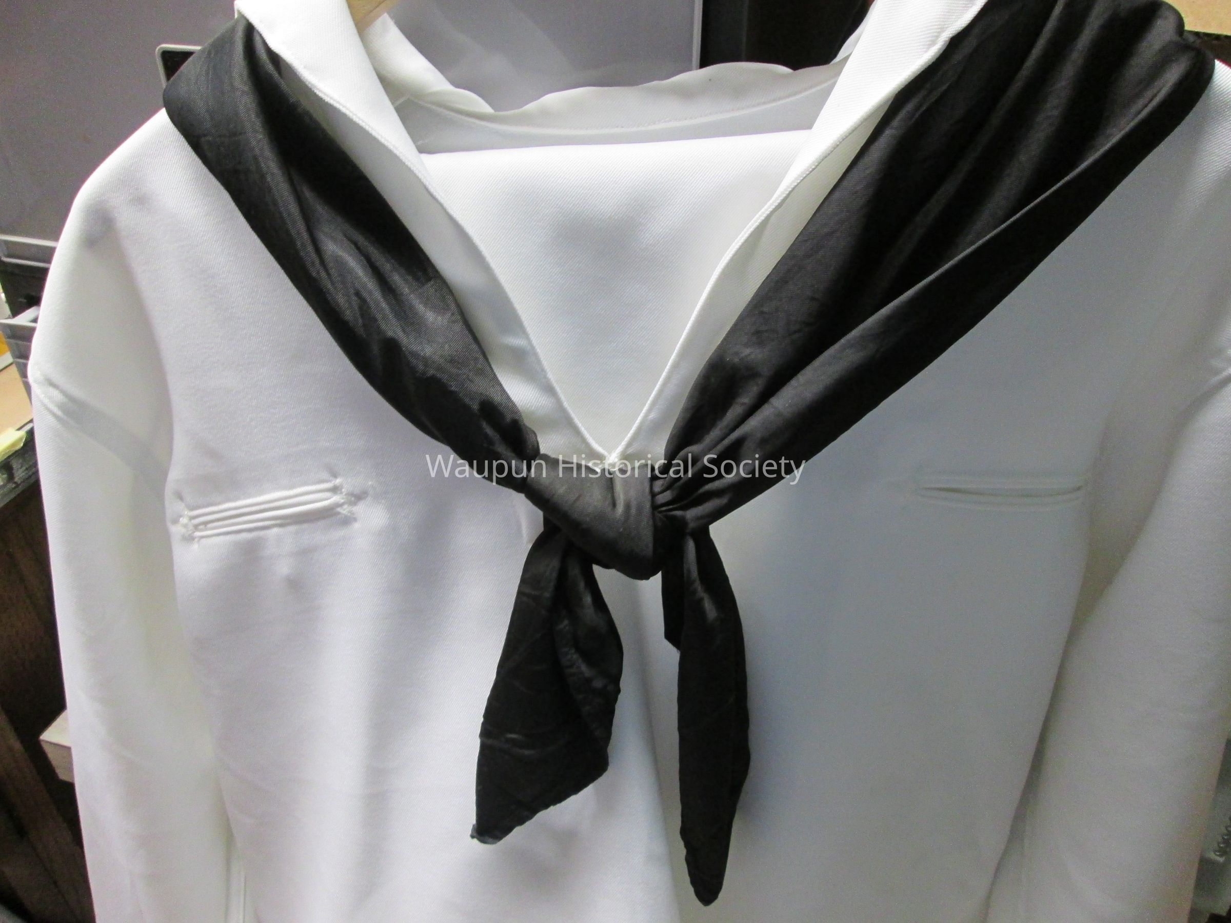 US White Navy uniform including pant stop with square collar and black scarf.Acquisition
