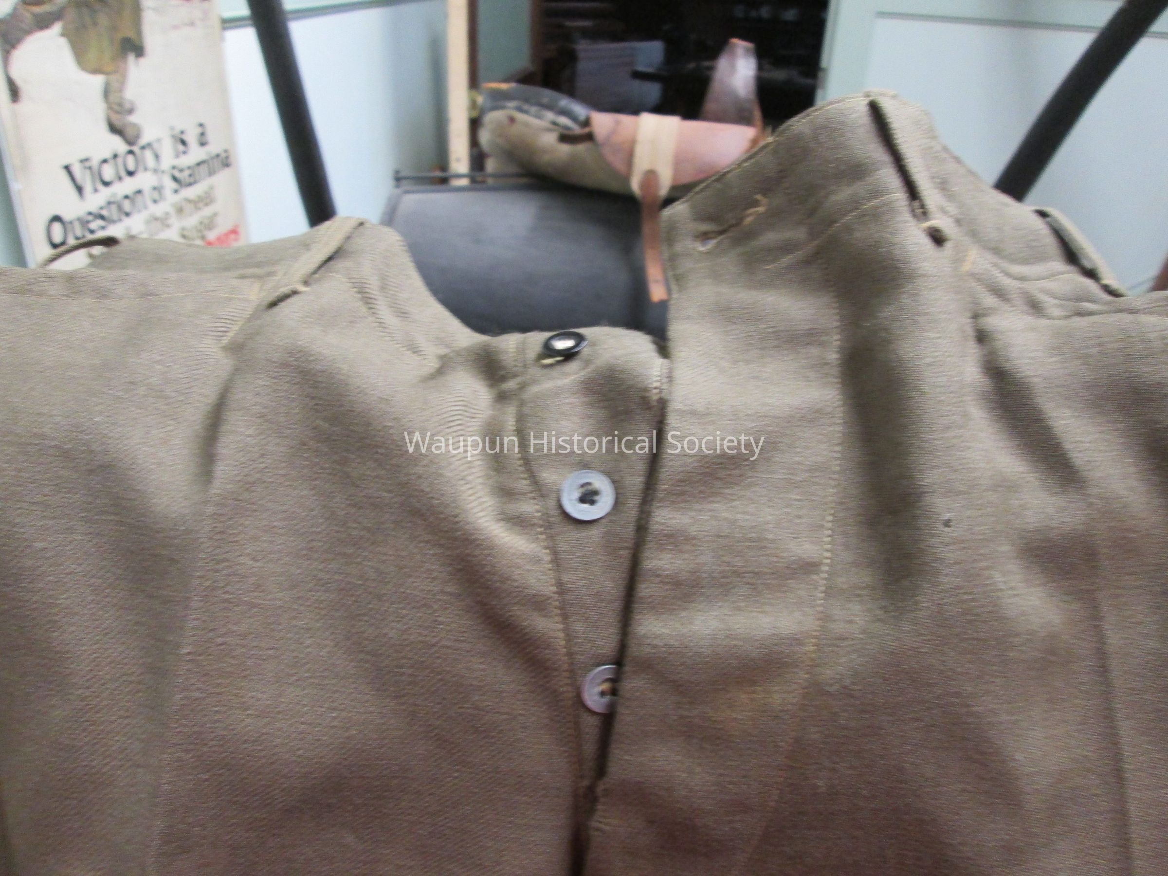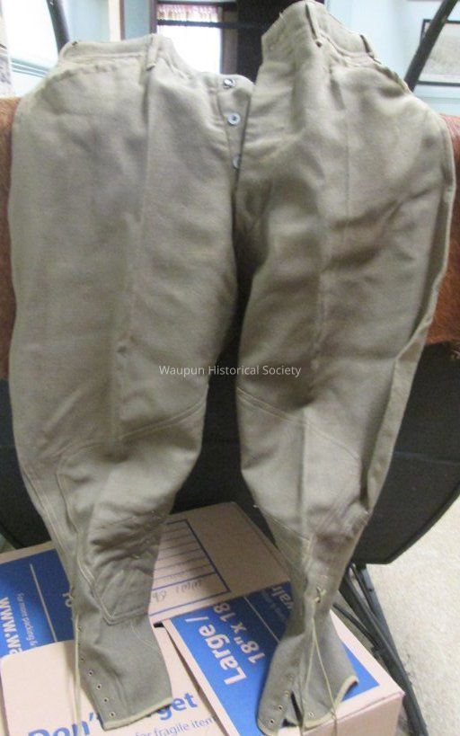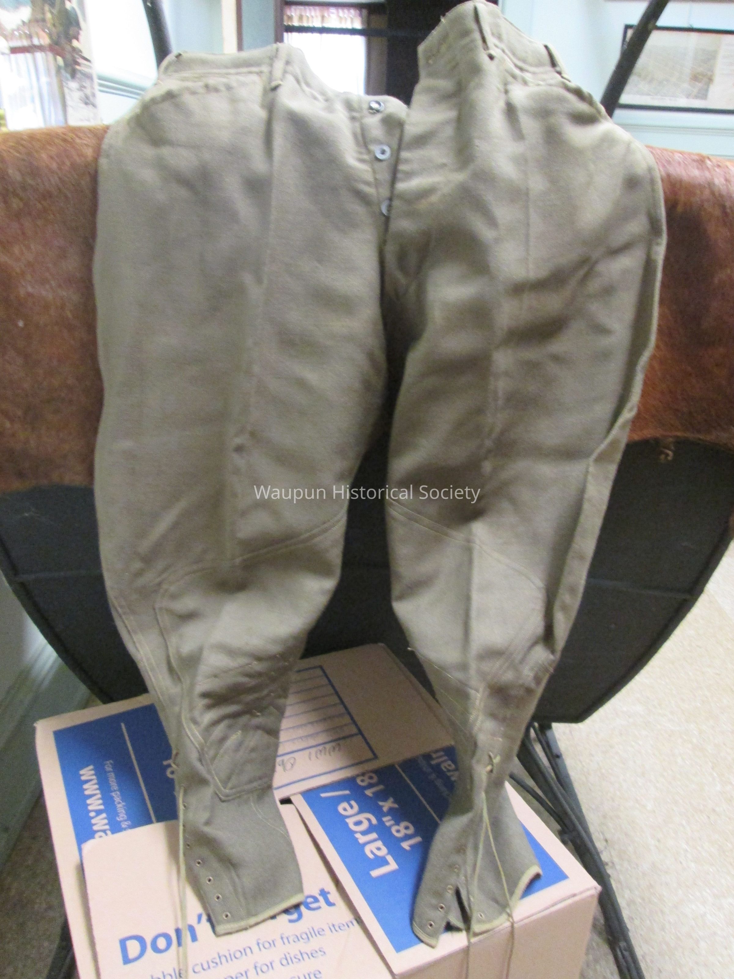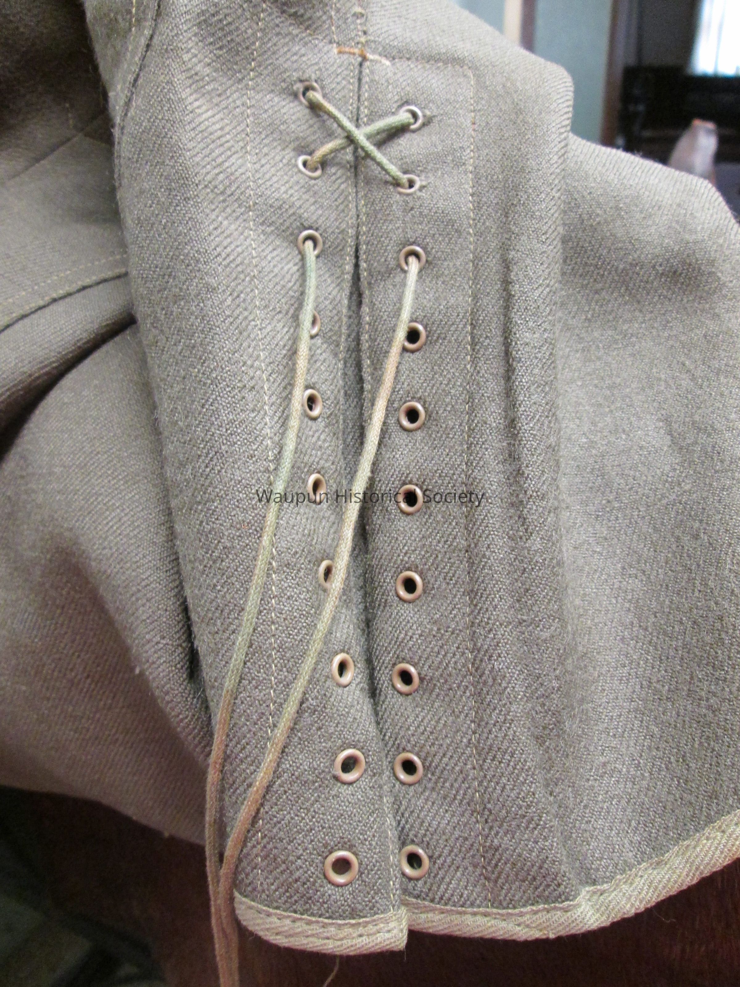 Brownish Green U.S. Army Button Up Uniform Pants with laces on bottom third of leg.Acquisition