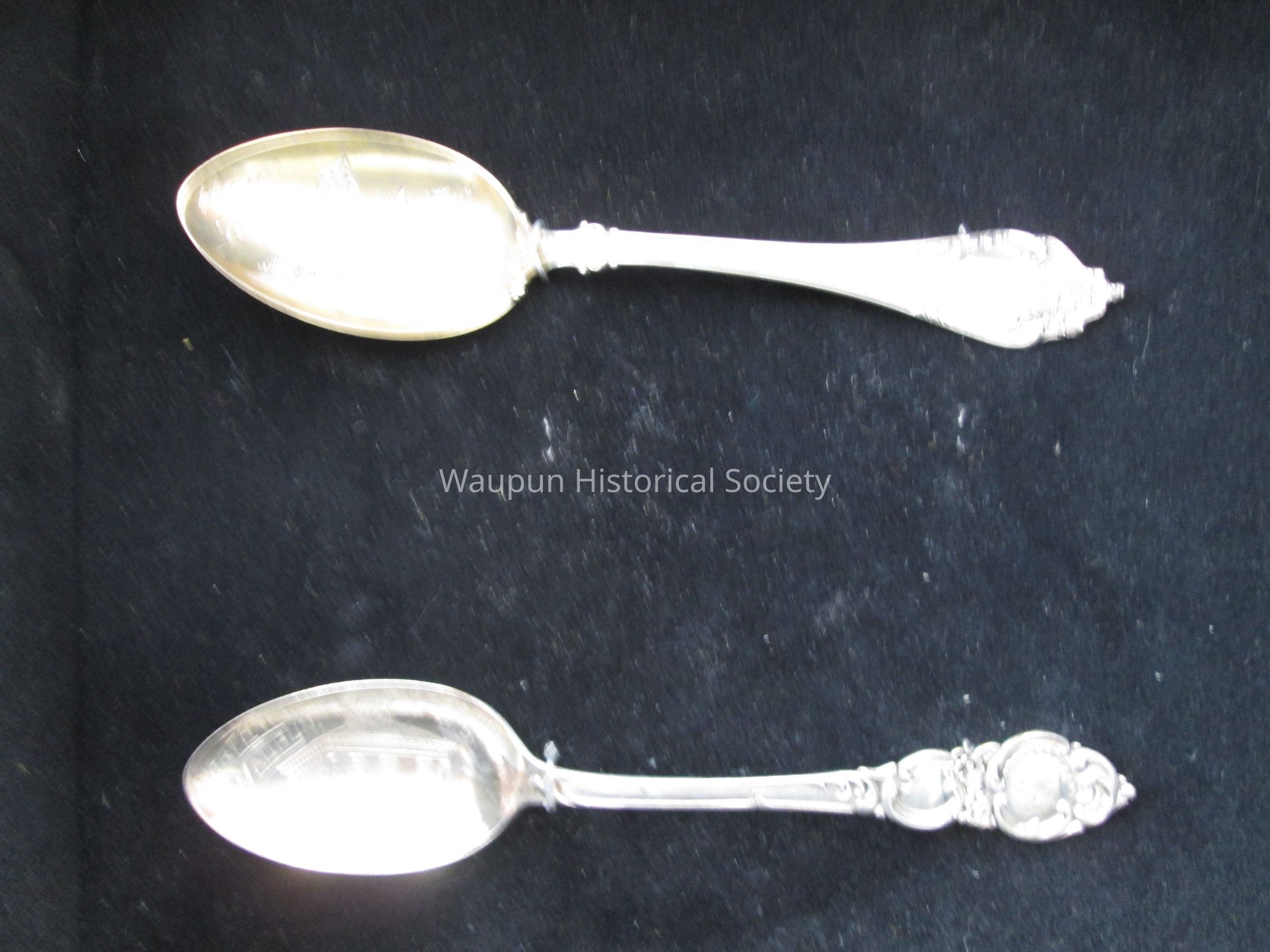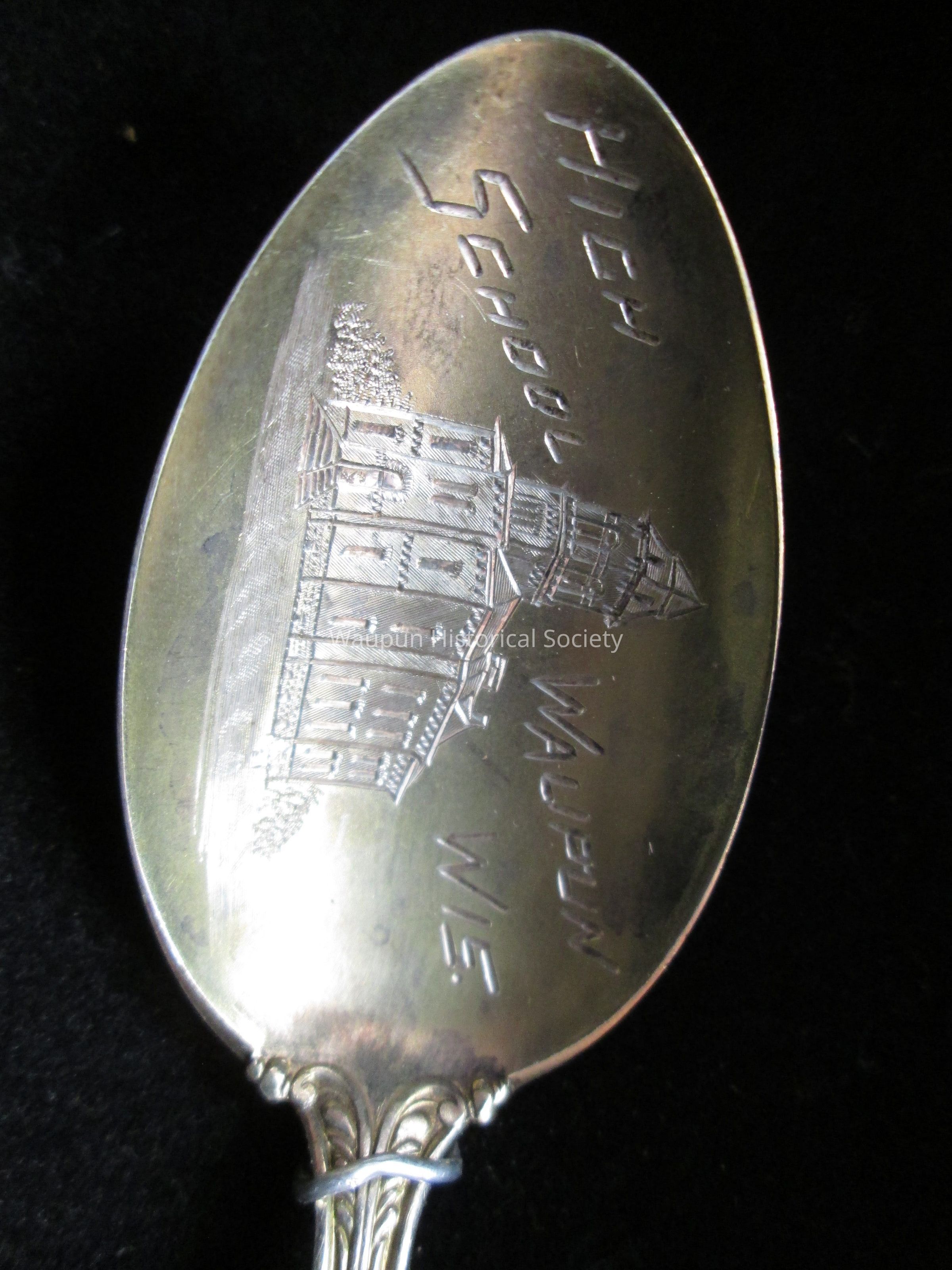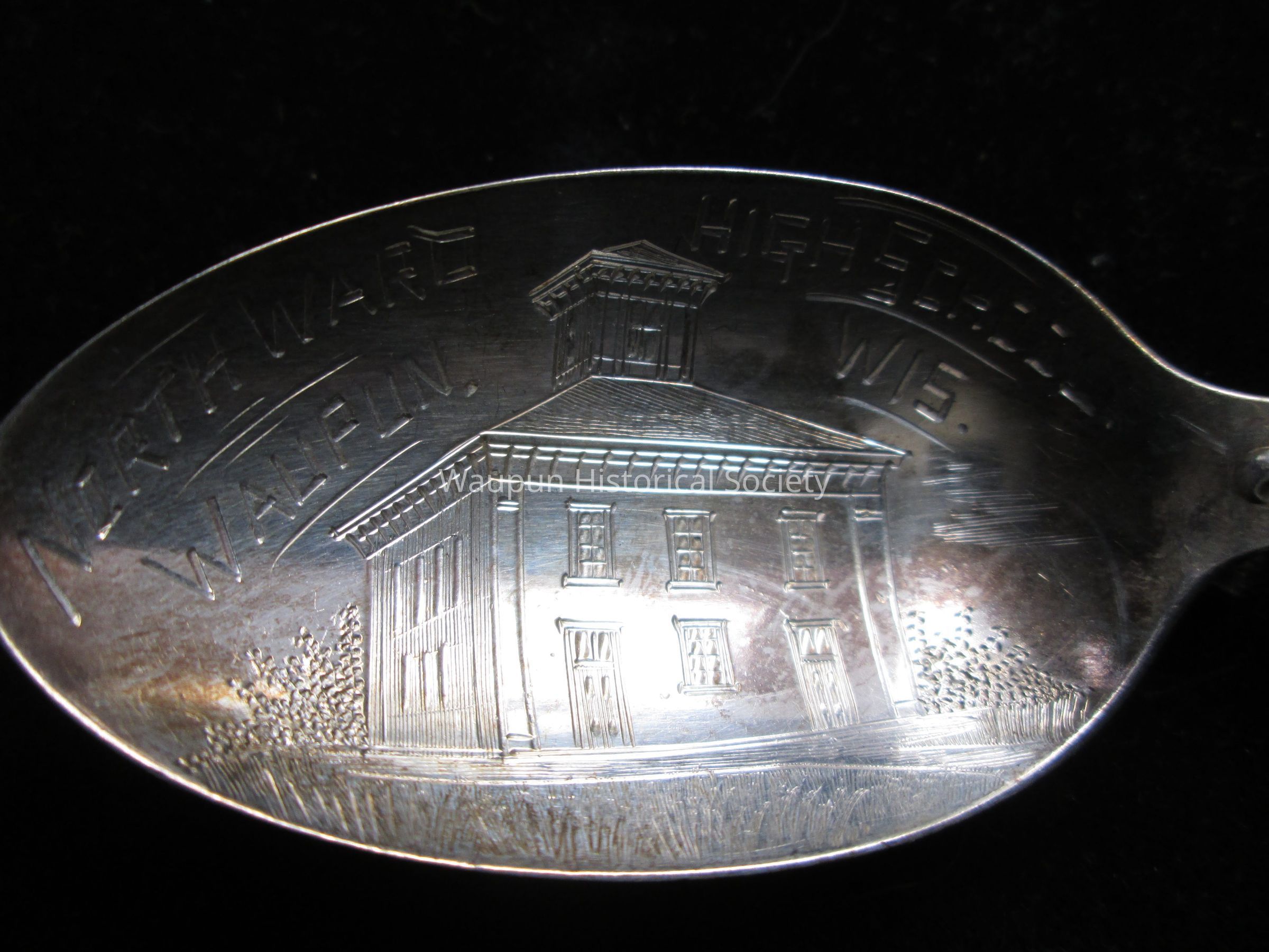 It was popular in the Late 19th and early 20th century to engrave spoons with important locations on them. Waupun made several depicting such locations as The Carnegie Library and The State Prison. These show the schools of the time, and North Ward is dated 1897.Acquisition