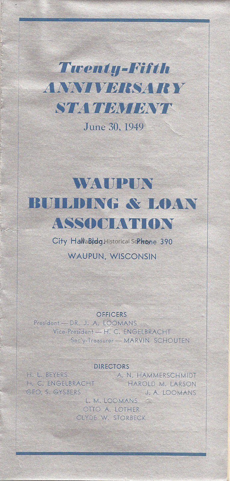 Twenty-Fifth Anniversary Statement of the WAUPIJN BUILDING AND LOAN ASSOCIATION