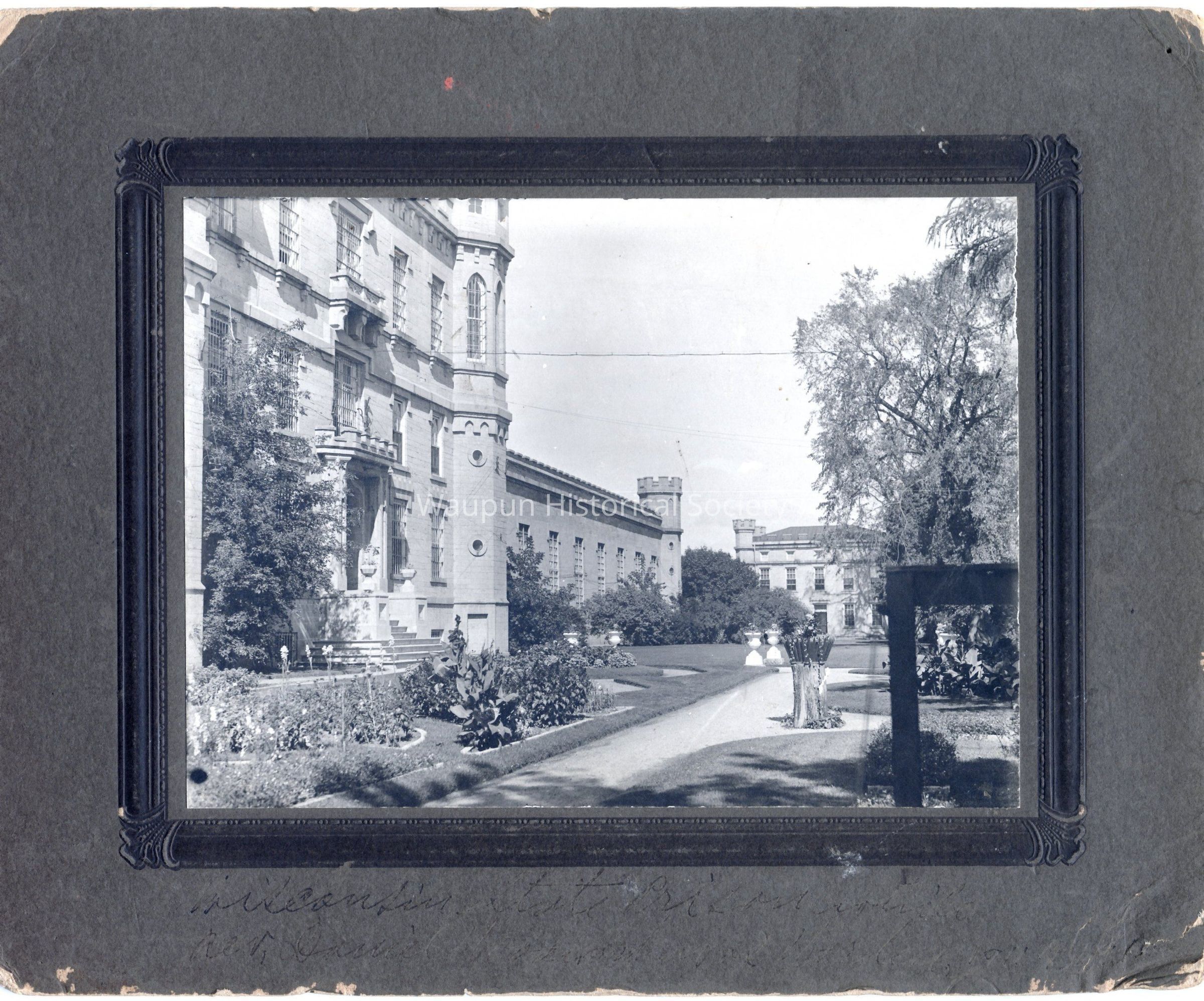 Photograph, Corrections, Wisconsin State Prison, Front Facade & Yard. Waupun State Prison Original Photo. Wisconsin State Prison while Rev. Daniel Woodward was warden. 1911Acquisition
