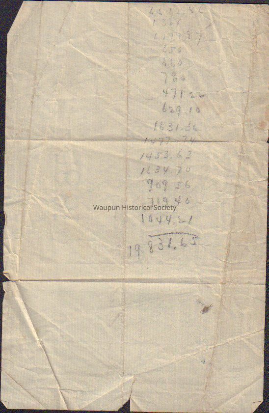 Receipt To Charles Hanish Estate for care of lot 156, Block A, for tear 1890, For watering plants in beds or vases, for year 18__, For grading and sodding for year 18__, and leveling lot, etc.
