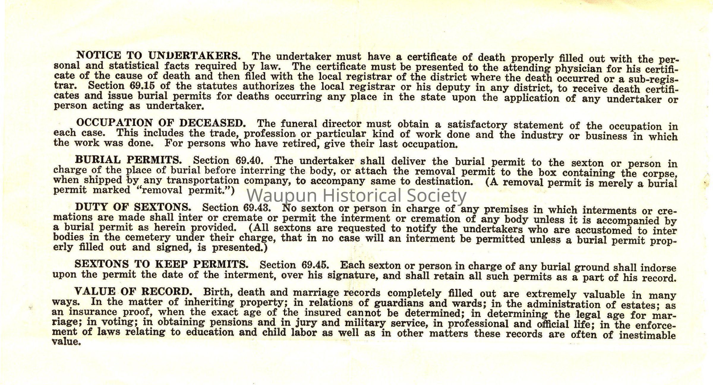 State of Wisconsin Burial Permit: Anton LeigebEntry/Object ID