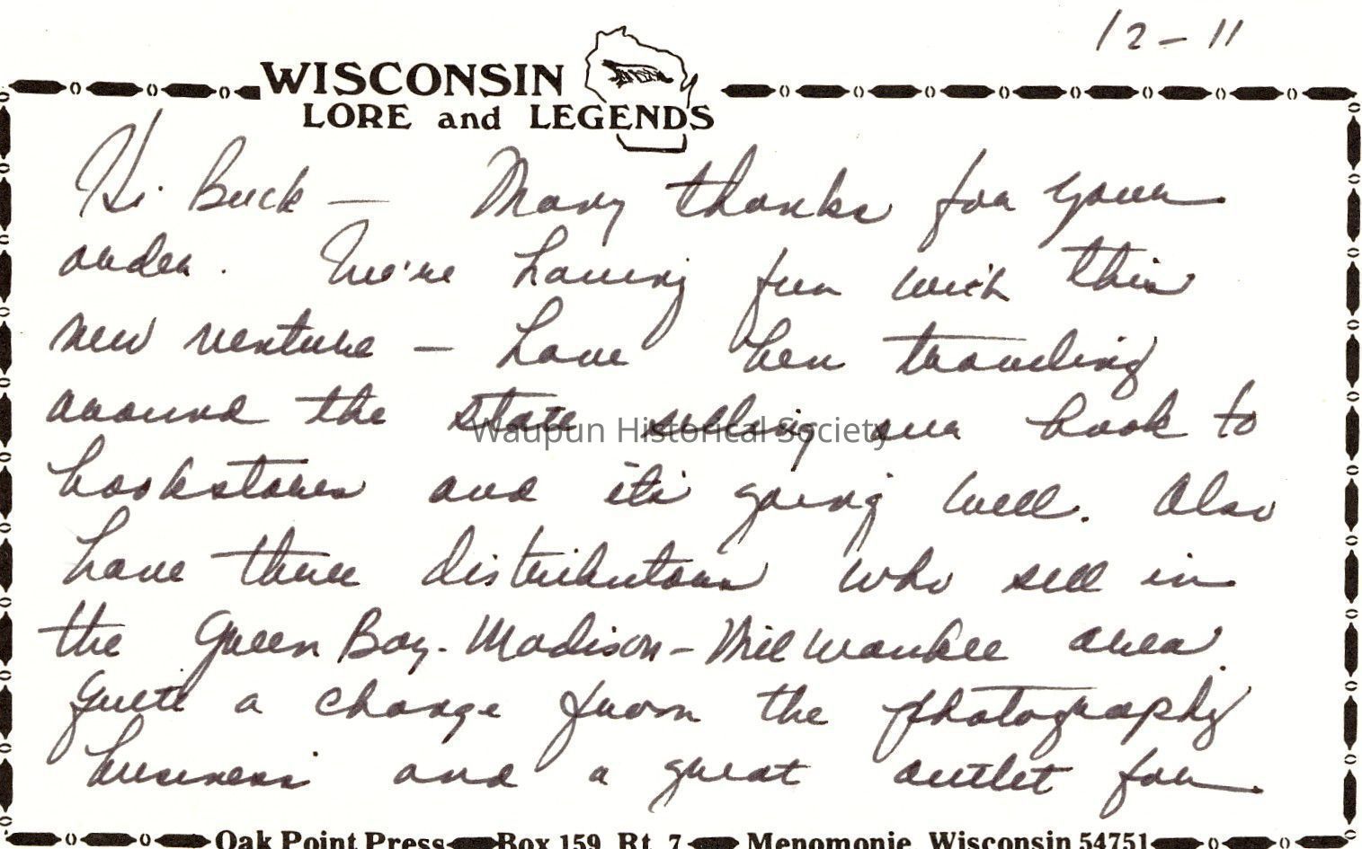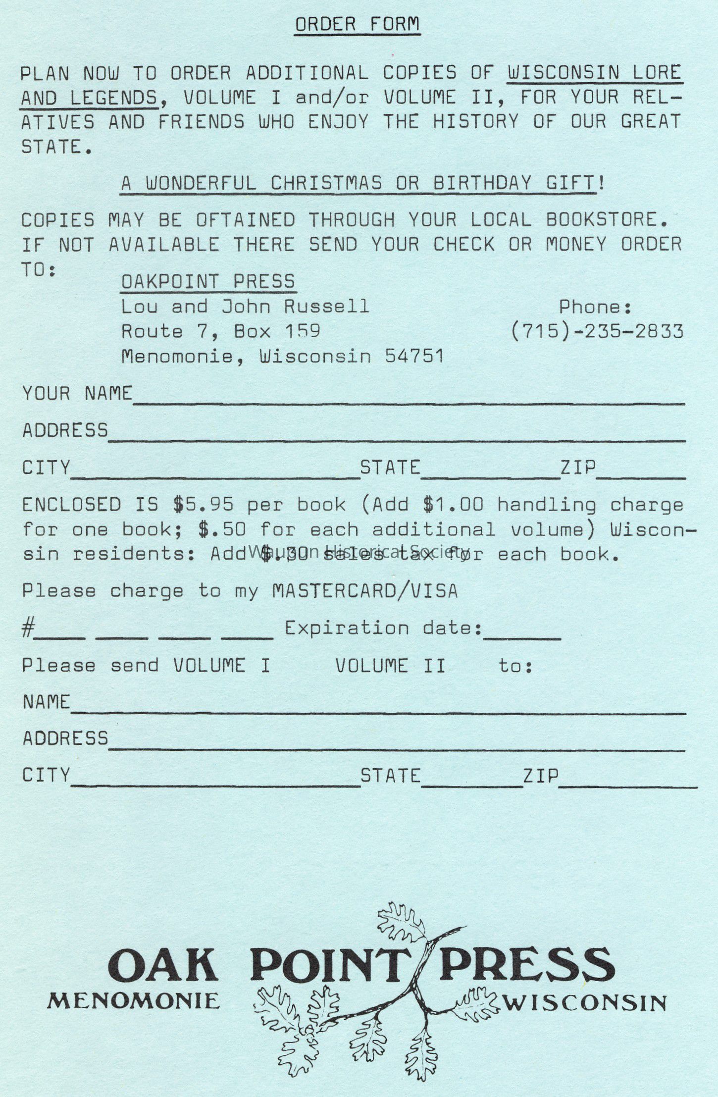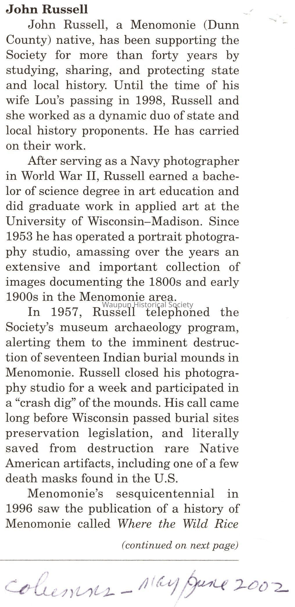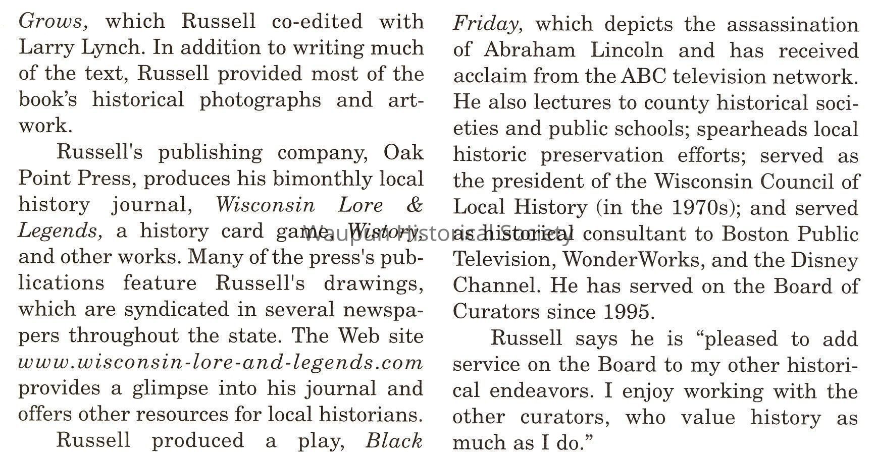 Collection contains 2 books and 7 article that came inside of the first addition. "Wisconsin Lore and Legends" by John and Lou Russell.