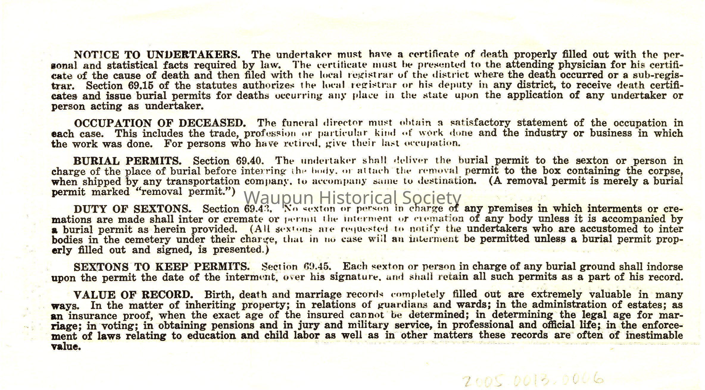 State of Wisconsin Burial Permit: Wm BrownEntry/Object ID