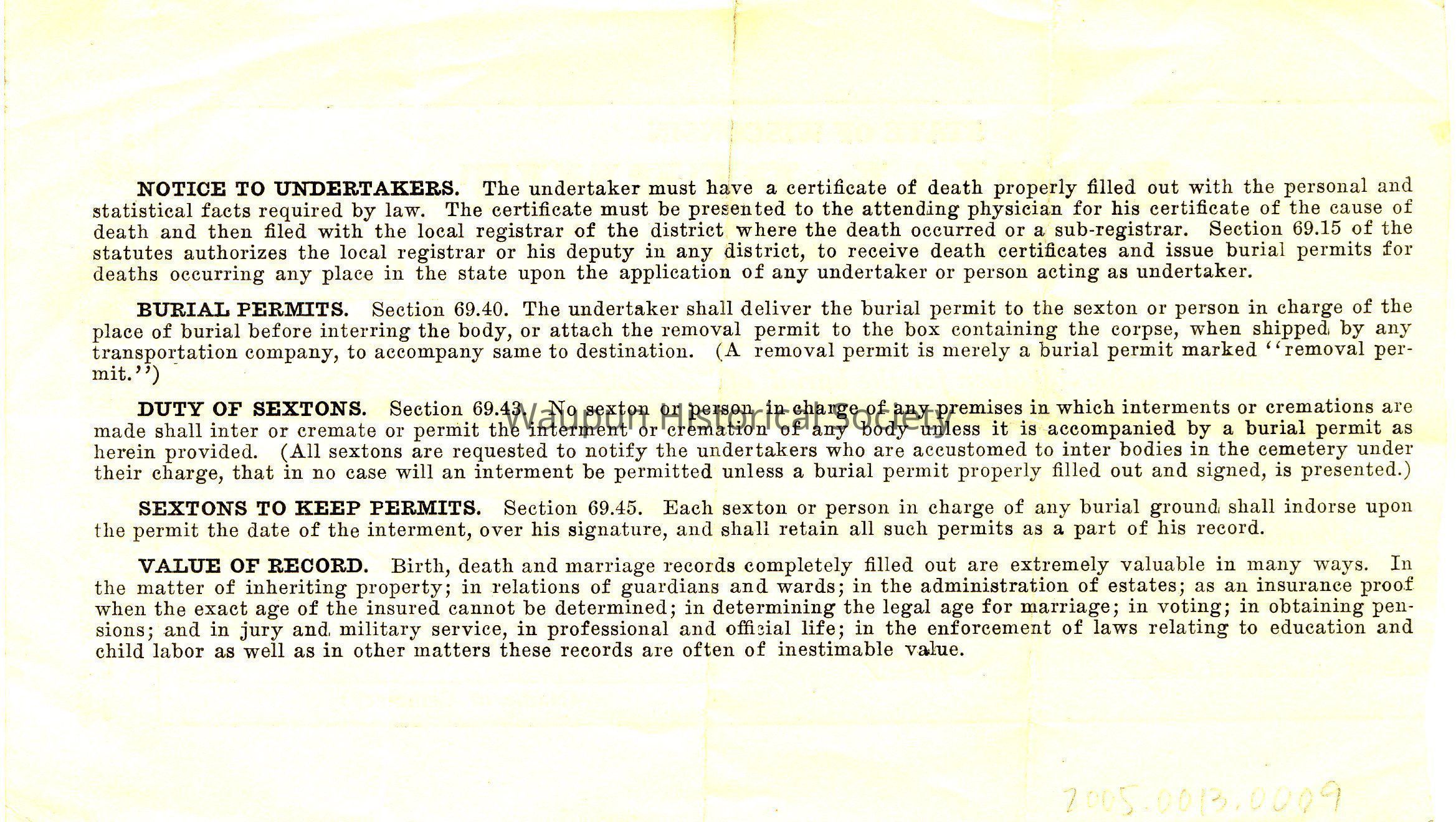 State of Wisconsin Burial Permit: Wm WalkerEntry/Object ID