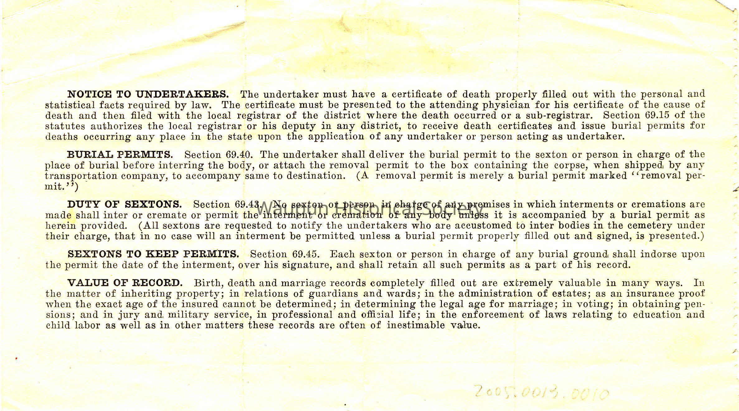 State of Wisconsin Burial Permit: Chas RuleEntry/Object ID